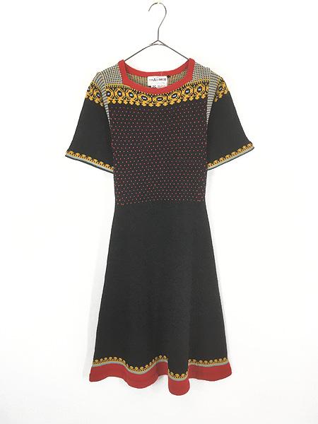 レディース 古着 80s COLLAGEDRESS ネイティブ フェアアイル スクエアネック 半袖 ニット ワンピース ミモレ丈 M 古着