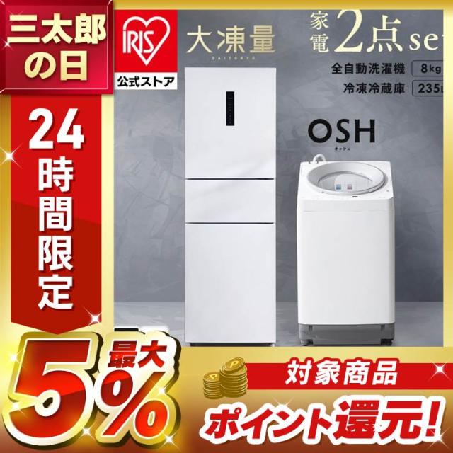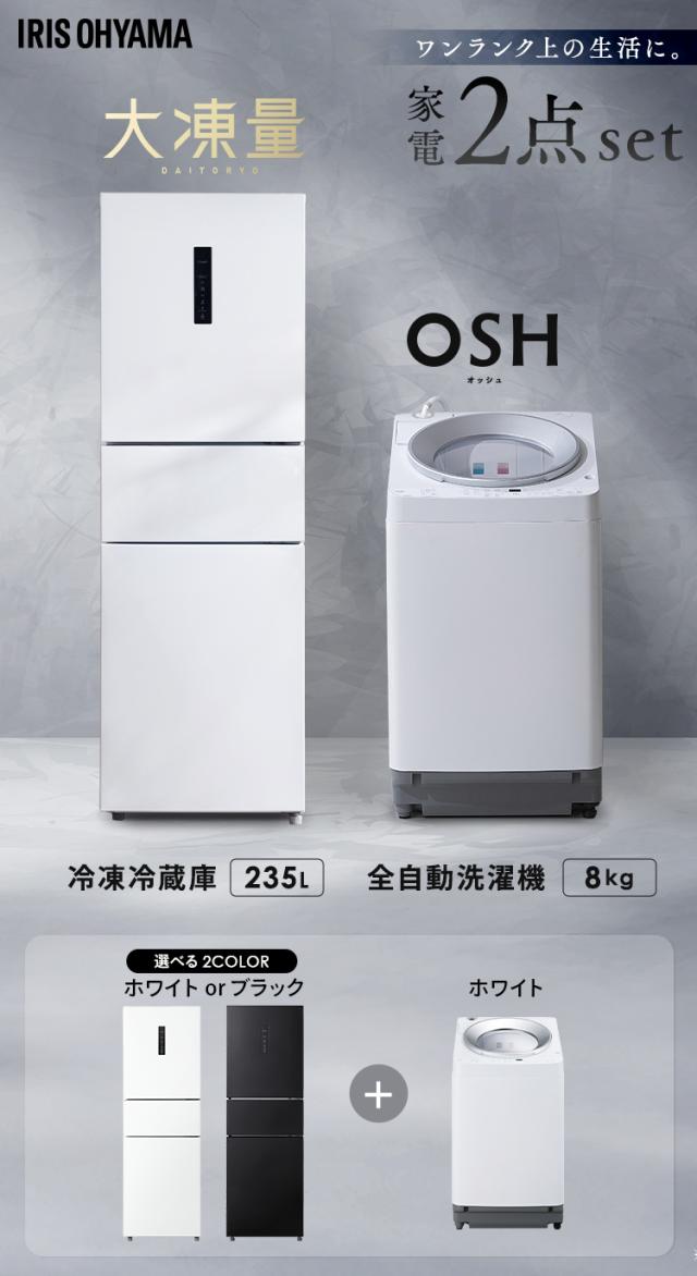 【設置込み】 冷蔵庫 235L 冷凍冷蔵庫 冷凍室 大容量 自動霜取り ソフト冷凍 洗濯機 8kg 全自動洗濯機 本体 縦型 縦型洗濯機 自動投入 省エネ イリスオーヤマ 家電セット 大凍量 IRSN-HF24A オッシュ OSH ITW-80A01 * 【HS】