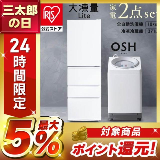 \35,000円OFFクーポン!~2/27 9:59/【設置込み】 冷蔵庫 371L 冷凍冷蔵庫 冷凍室 大容量 自動霜取り 急速冷凍 洗濯機 10kg 全自動洗濯機 本体 縦型 縦型洗濯機 自動投入 省エネ 新生活 アイリスオーヤマ 家電セット 大凍量 IRSN-37A オッシュ OSH ITW-100A03 * 【HS】