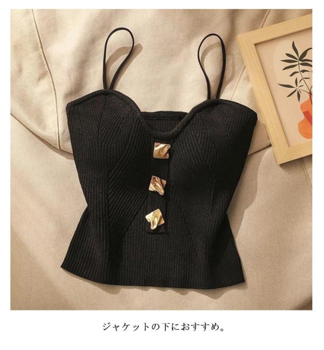 ビスチェ ニットキャミ Vネック 夏 ニット キャミソール レディース 下着 夏インナー サマーニット ショート丈 短い コンパクト 黒 白 送料無料