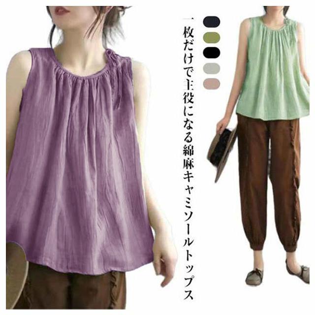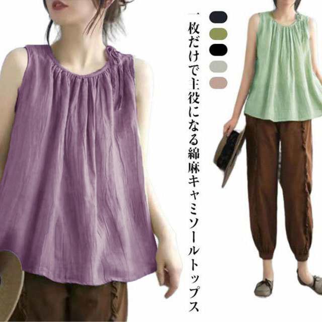 | 一枚だけで主役になる綿麻キャミソールトップス 柔らかくて、肌触りがやさしいコットンリネン素材で快適な着心地。 ゆったりとしたシルエットなのに美シルエットで女らしい雰囲気を演出します。 豊富なカラーバリエーション展開、一枚で着ても、インナーに着てもオシャレなアイテム。 | |