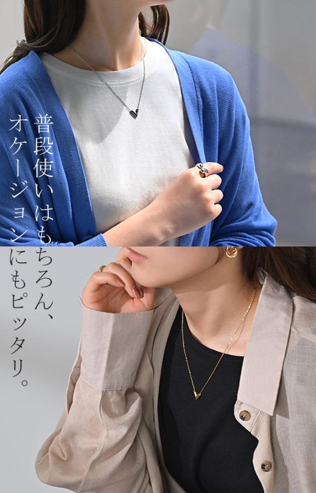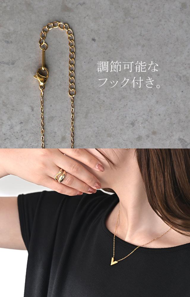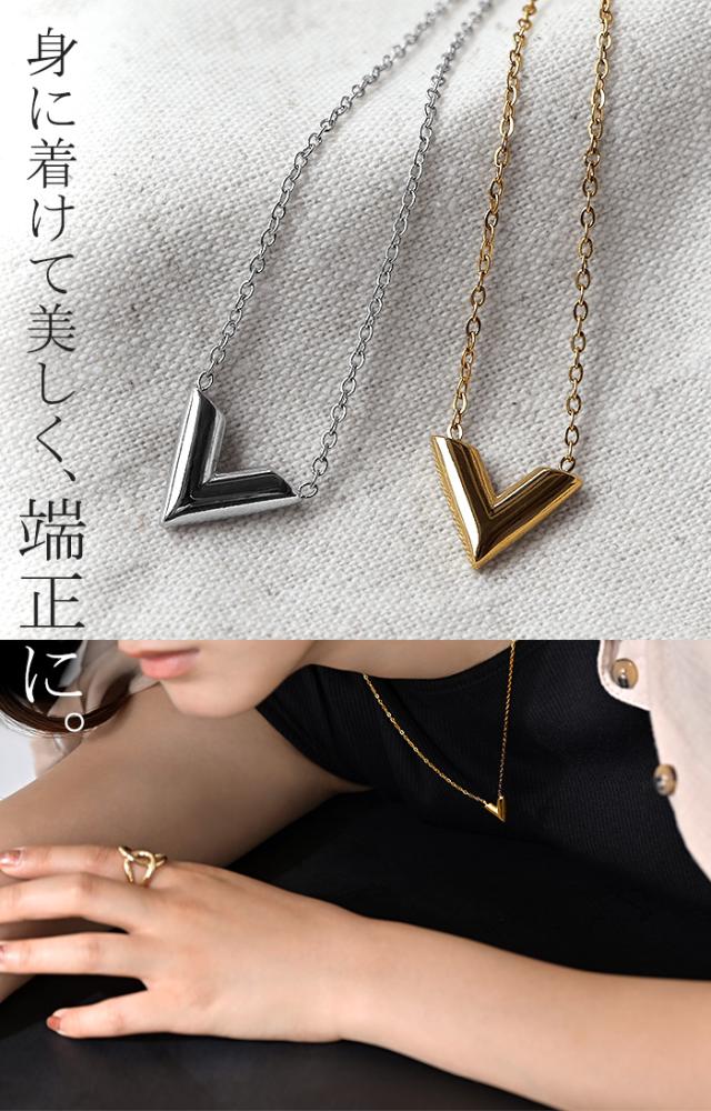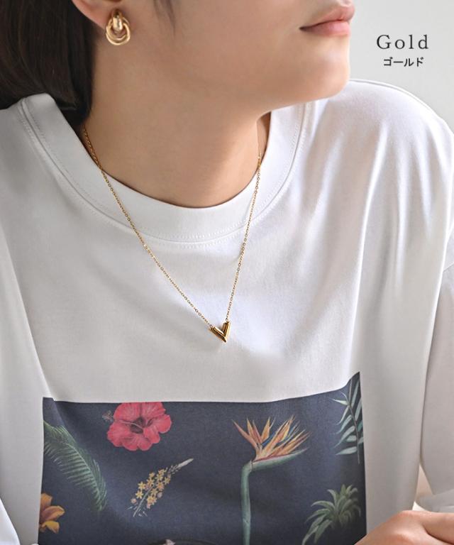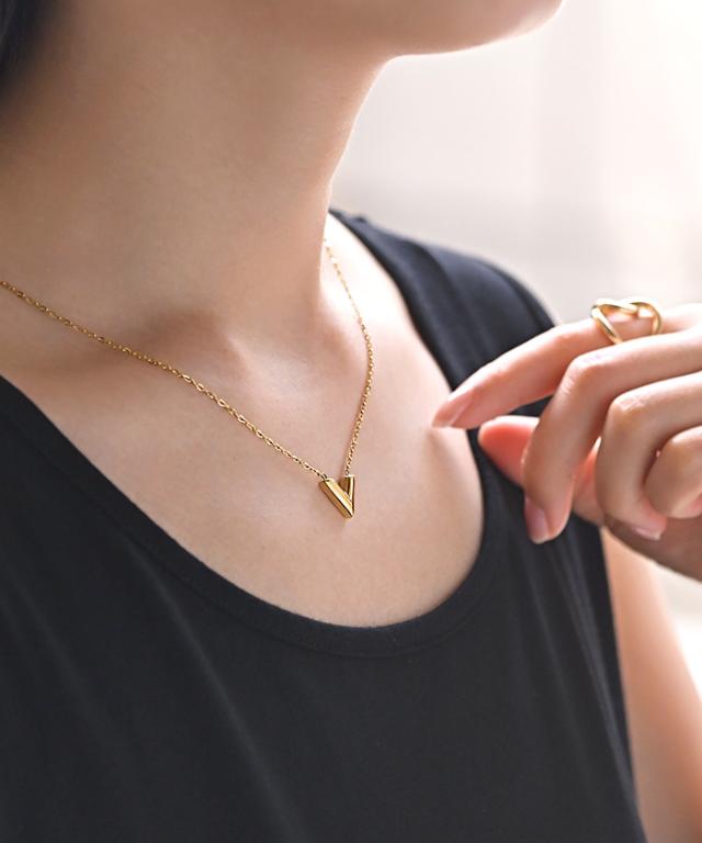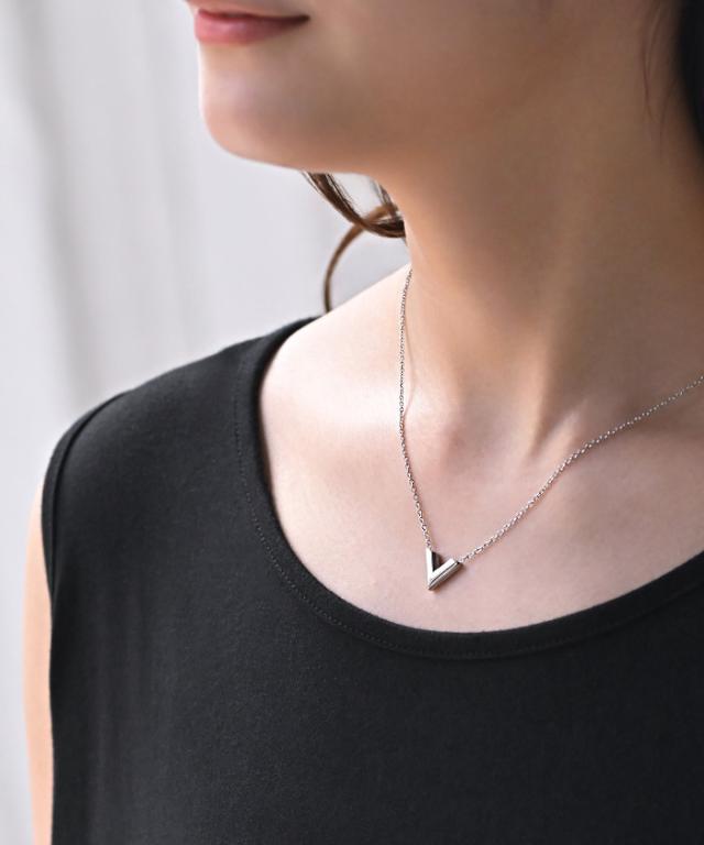V字トップが首元をすっきり魅せてくれるレディライクなネックレスです。
