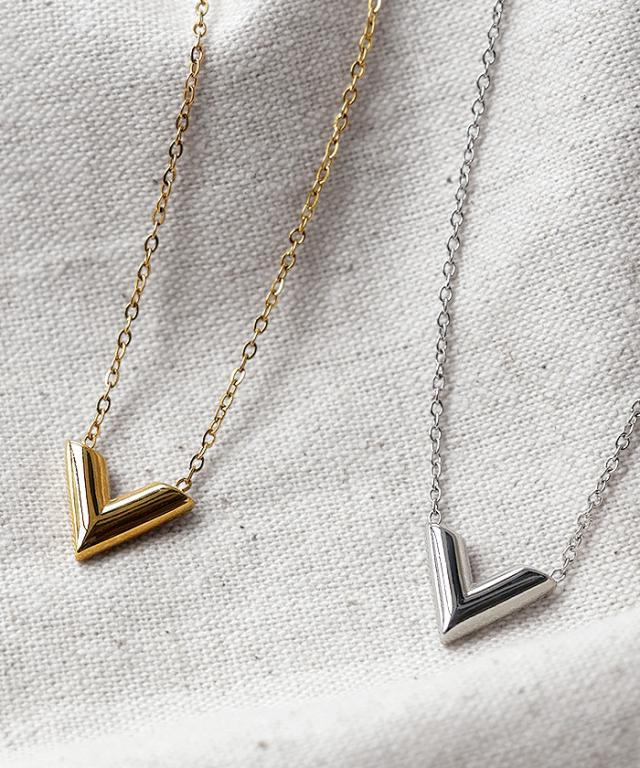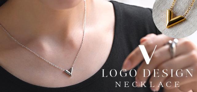 ネックレス V字 ロゴ モチーフ レディース アクセサリー チェーン ロング ロングネックレス オブジェ 錆びにくい シルバー ゴールド 長い アクセ ジュエリー おしゃれ きれいめ 高見え 高級感 プチプラ ステンレス gold silver 上品 春 夏 HUG.U 秋新作