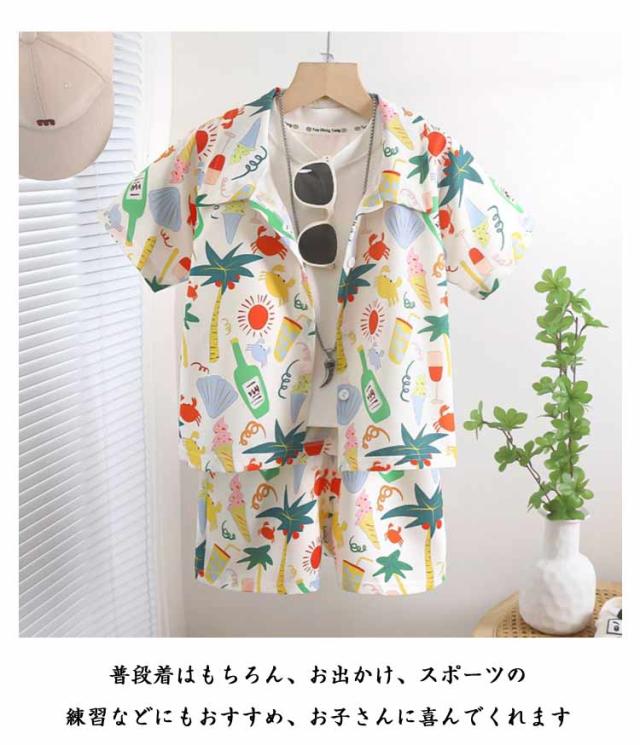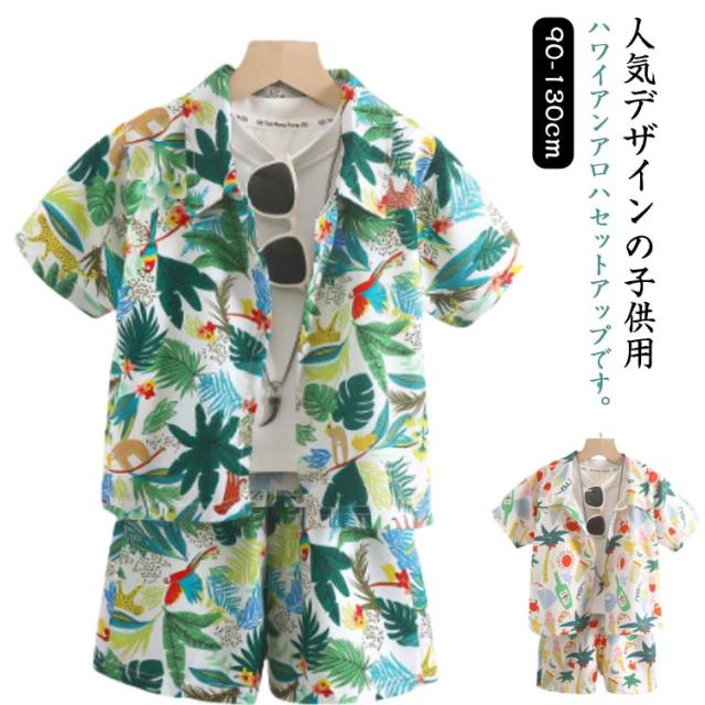 アロハセットアップ ショートパンツ アロハシャツ 上下セット 花柄 セットアップ アロハ 男の子 女の子 総柄 半袖シャツ ト 上下 薄手 ハーフパンツ 短パン ベビー服 夏物 こども服 キッズ 子供シャツ 韓国 子供服 リゾート 送料無料