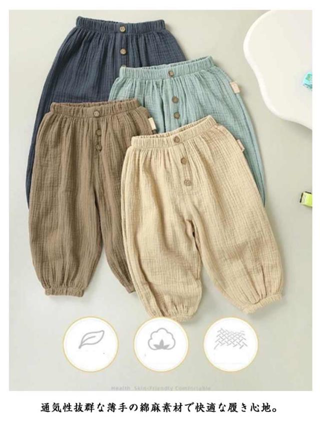 キッズ ロングパンツ 虫よけ 子供服 長ズボン ベビー 薄手 涼しい 綿 ナチュラル ルームパンツ 無地 シンプル 春夏用 防蚊 冷房対策 紫外線対策 女の子 男の子 ボトムス 裾ゴム 日除け カジュアル おしゃれ 保育服 可愛い 出産祝い 送料無料
