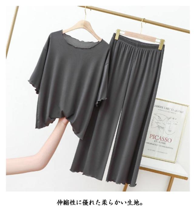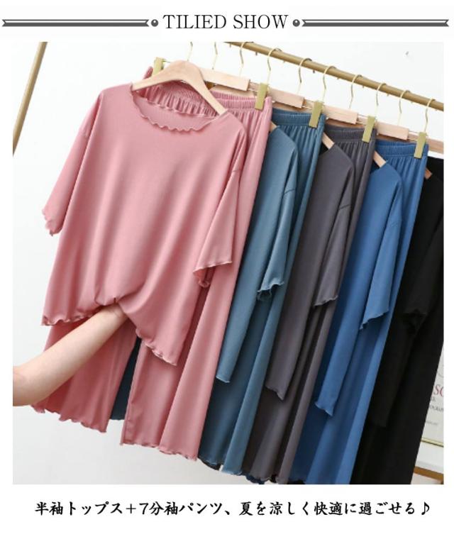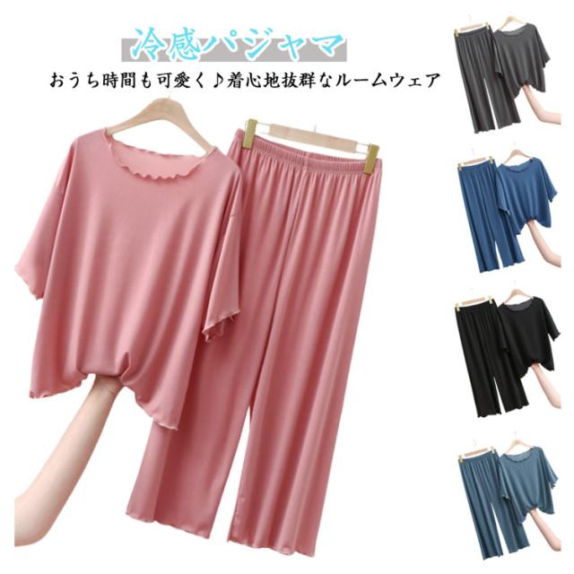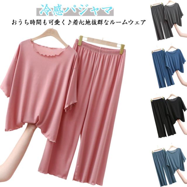 冷感パジャマ レディース パジャマ上下セット 半袖 涼しい 夏 部屋着 セットアップ 婦人パジャマ 快眠 ひんやり ルームパジャマ パジャマ 七分丈パンツ リラックス ルームウェア 夏 通気性 送料無料 部屋着 寝ま着 送料無料