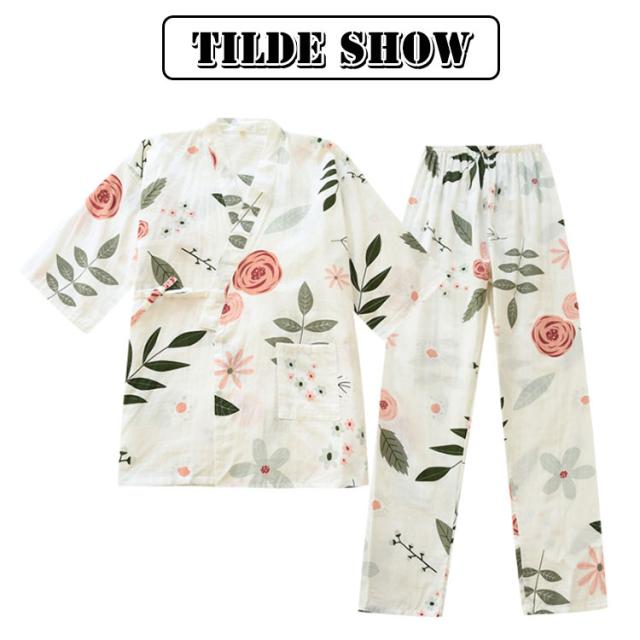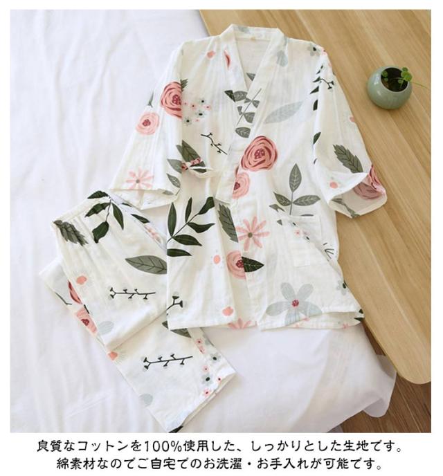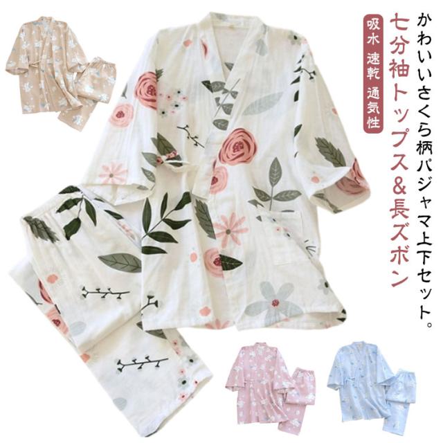 甚平 綿 レディース パジャマ 上下セット 七分袖 長ズボン じんべい 浴衣 花火大会 夏祭り 春 夏 パジャマ 前開き 花柄 桜柄 総柄 かわいい おしゃれ 和服 ルームウエア 部屋着 薄手 コットン 100 吸水 速乾 通気性 【送料無料】