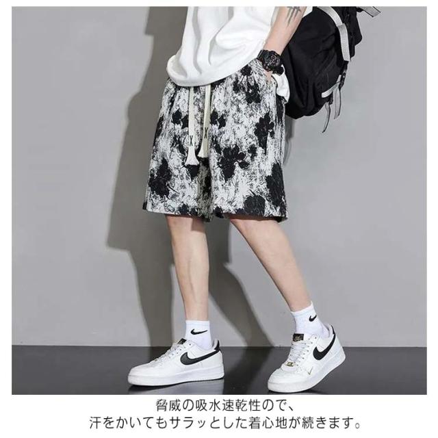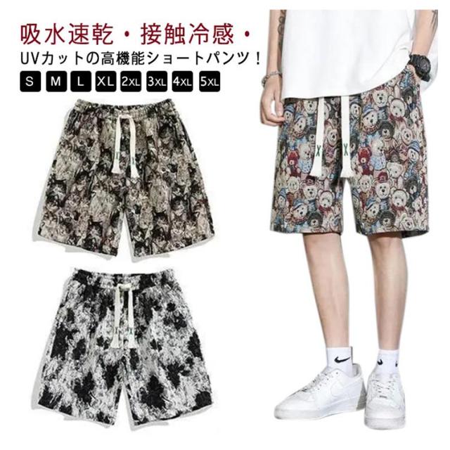 接触冷感 吸汗 速乾 ハーフパンツ メンズ ひざ下 ストレッチ アイスシルクパンツ ショートパンツ ドライ UVカット 夏用 総柄 速乾 冷感 ひざ下 おしゃれ 吸水 部屋着 汗 スポーツ 派手 アウトドア 送料無料