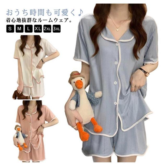 パジャマ レディース 半袖 ルームウェア 夏 夏用パジャマ 前開き 冷感 半袖 ショートパンツ 上下セット セットアップ かわいい 半袖パジャマ 可愛いパジャマ 部屋着 無地 伸縮性 ストレッチ ナイトウェア 学生 大人 大きいサイズ 送料無料