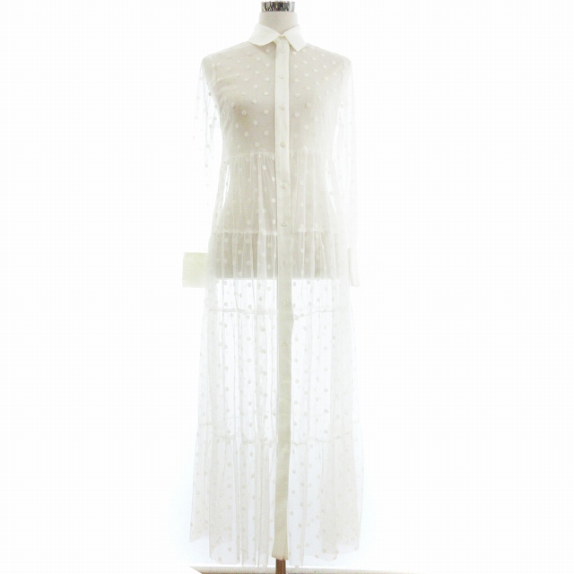 【中古】未使用品 ザラ ZARA タグ付き シースルーワンピース ロング 長袖 水玉 白 ホワイト XS レディース