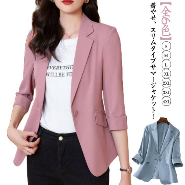 サマージャケット スーツジャケット 春夏 レディース テーラードジャケット 夏用 ビジネスジャケット 冷房対策 コーデ 薄手 ライトアウター ジャケット スリム ビジネス 大きいサイズ 韓国ファッション S M L XL 2XL 3XL 4XL