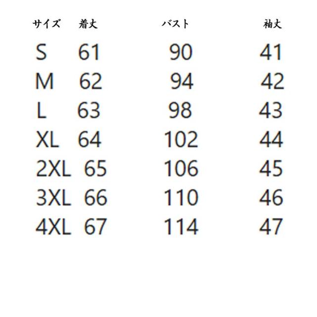 | サイズ | S M L XL 2XL 3XL 4XL |