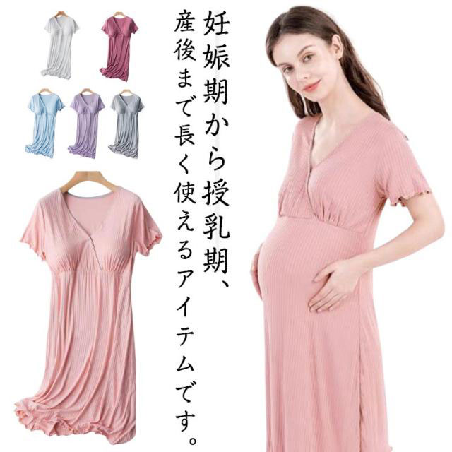 マタニティ パジャマ ルームウェア ワンピース ネグリジェ 半袖 産前 産後 授乳服 カップ付き 寝間着 室内着 部屋着 マタニティウェア 肌に優しい 快適 着たまま授乳 ストレッチ 無地 妊婦服 母親 服装 部屋着 ゆったり 体型カバー 無地 春 夏