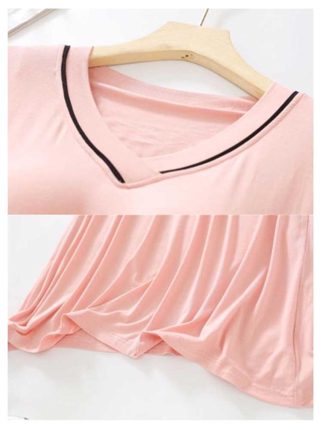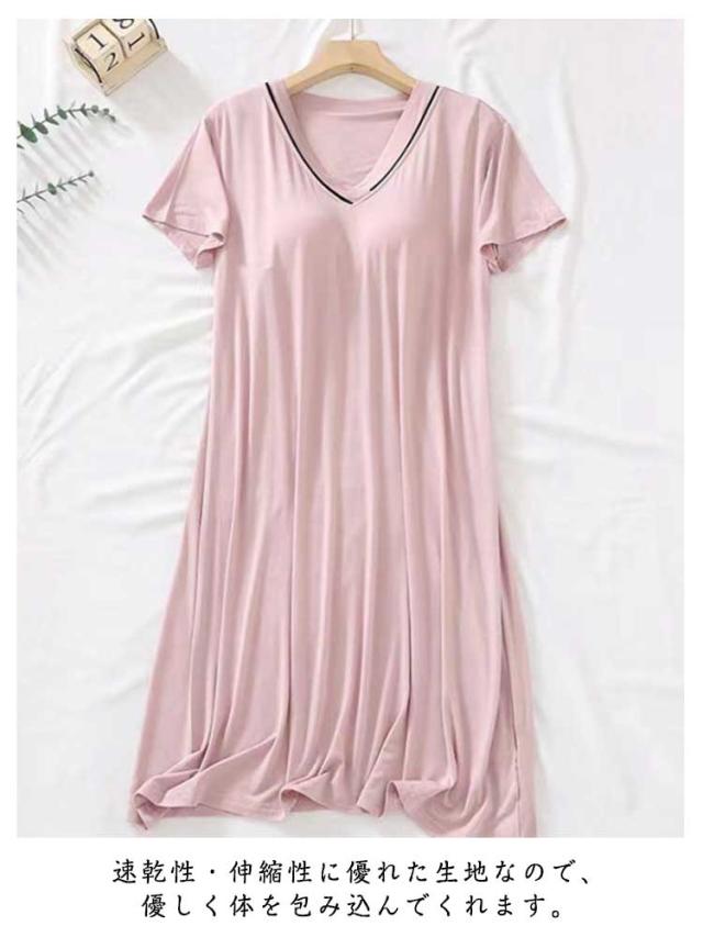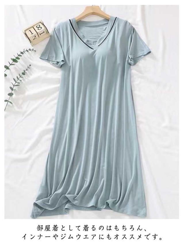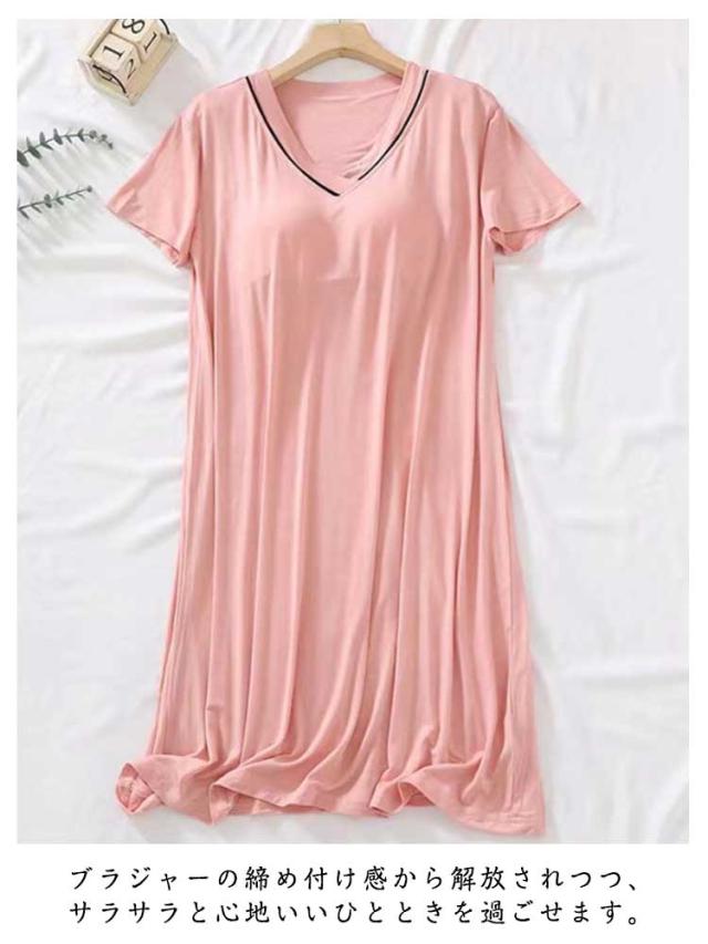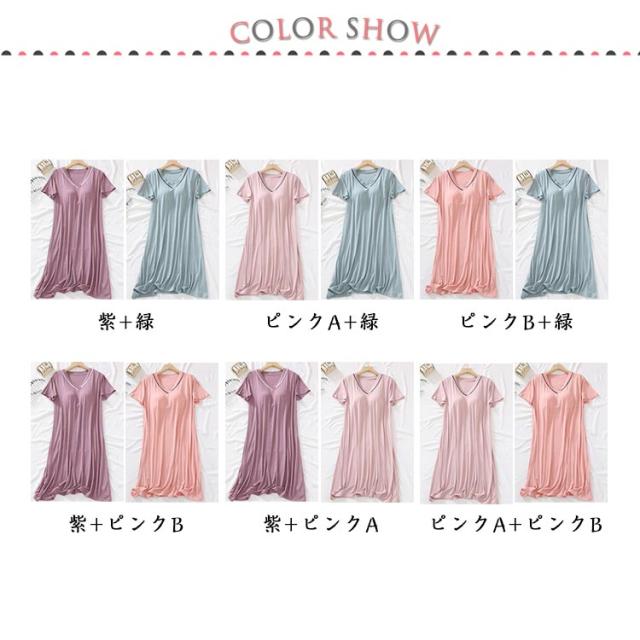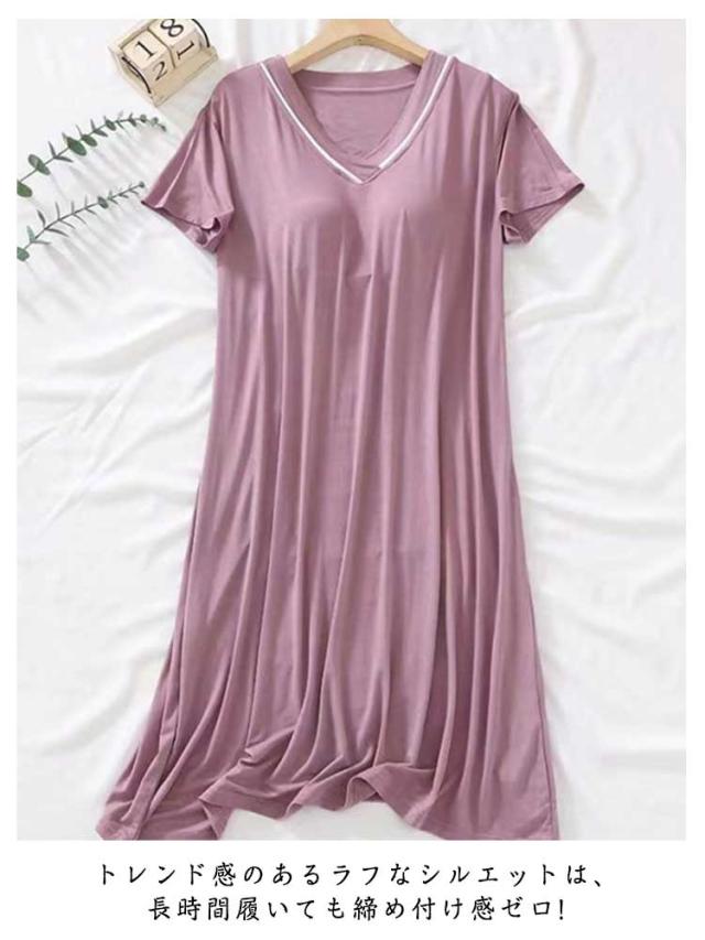 2枚セット! カップ付き ルームウェア 夏 半袖 ワンピース パジャマ レディース 可愛い かわいい ランジェリー 部屋着 大人 マタニティ 寝巻き ナイトウェア ミモレ丈 Vネック ゆったり 涼しい 柔らかい 締め付けない 快適 春 夏 薄手 無地 シンプル