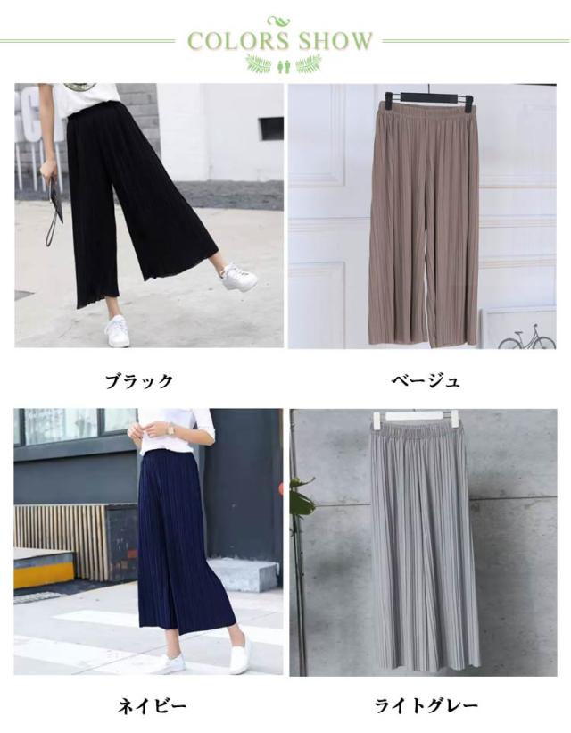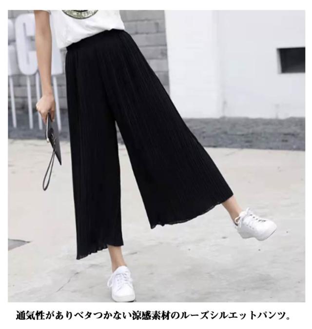 ワイドパンツ レディース 九分丈 きれいめ 春夏 低身長 シフォン プリーツ フレア 涼しい 大きいサイズ ゆったり おしゃれ かわいい ガウチョパンツ プリーツパンツ ボトムス リラックスパンツ ロングパンツ ウエストゴム ハイウエスト