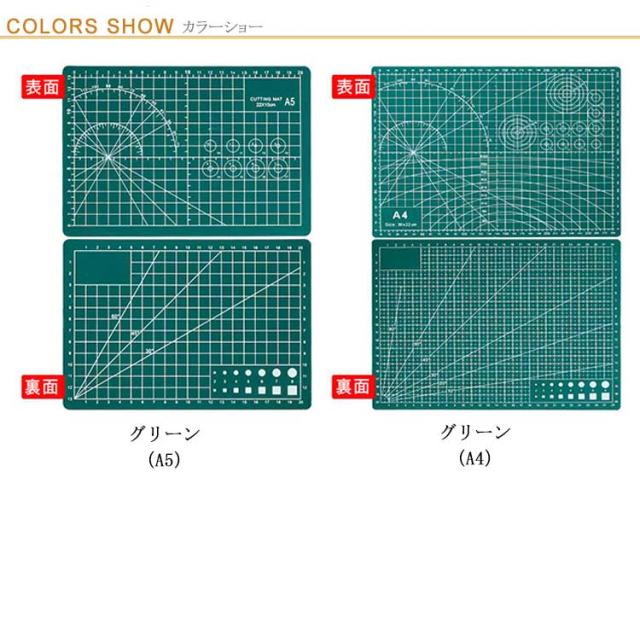 カッティングマット カッターマット A4 A5 両面 グリーン 作業マット 手芸 美術用 DIY 作業台 アートマット 切り絵マット 裁縫道具 美術用品 手作り用品 事務用品 軽量 業務用 工作 雑貨 切り出し 型紙 学校 会社 オフィス