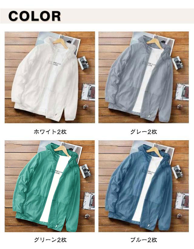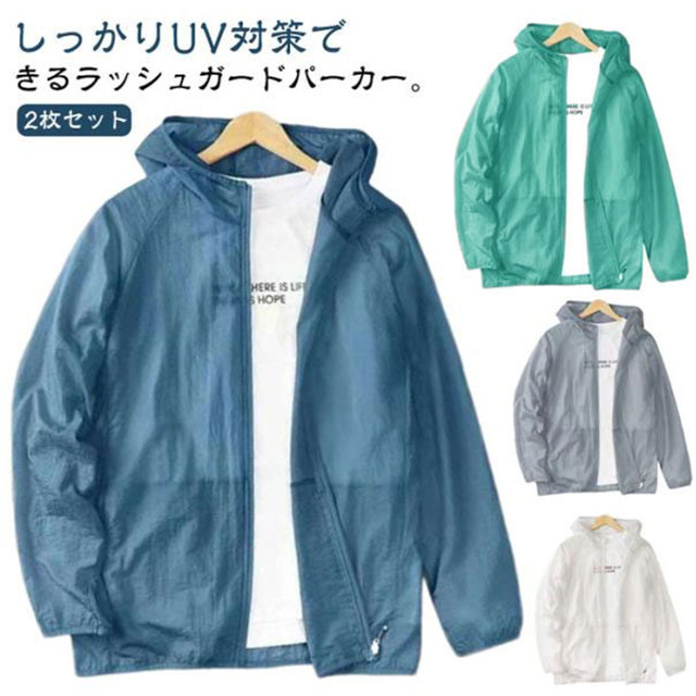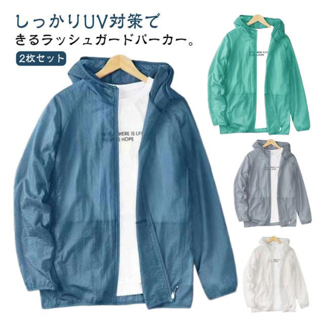 2枚セット UVカット パーカー メンズ 接触冷感 ウインドブレーカー 長袖 サマージャケット ブルゾン アウター ジャケット ジャンパー 薄手 紫外線対策 ラッシュガード フード付き 軽量 ジップアップ 春夏 アウター 大きいサイズ 通気性 防風 日焼け止め M-4XL
