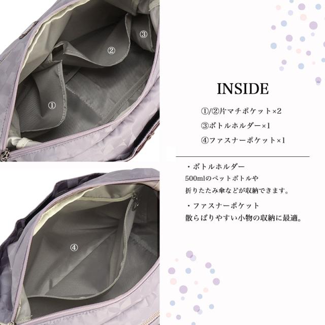 ファスナーポケット×1/片マチポケット×2/ボトルホルダー×1