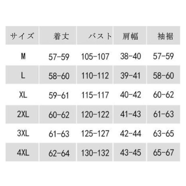 | サイズ | M L XL 2XL 3XL 4XL |