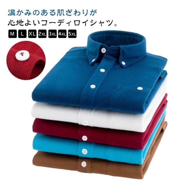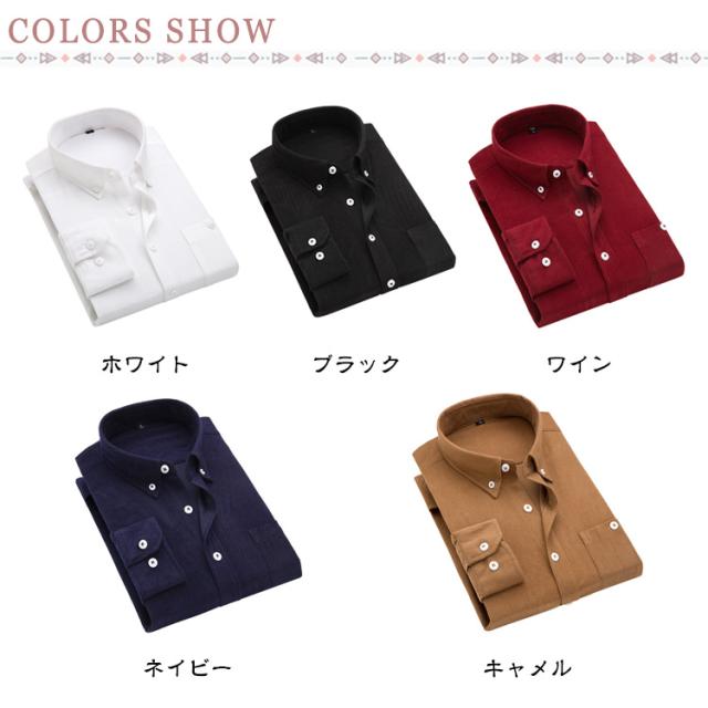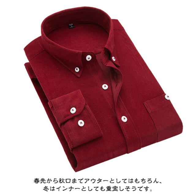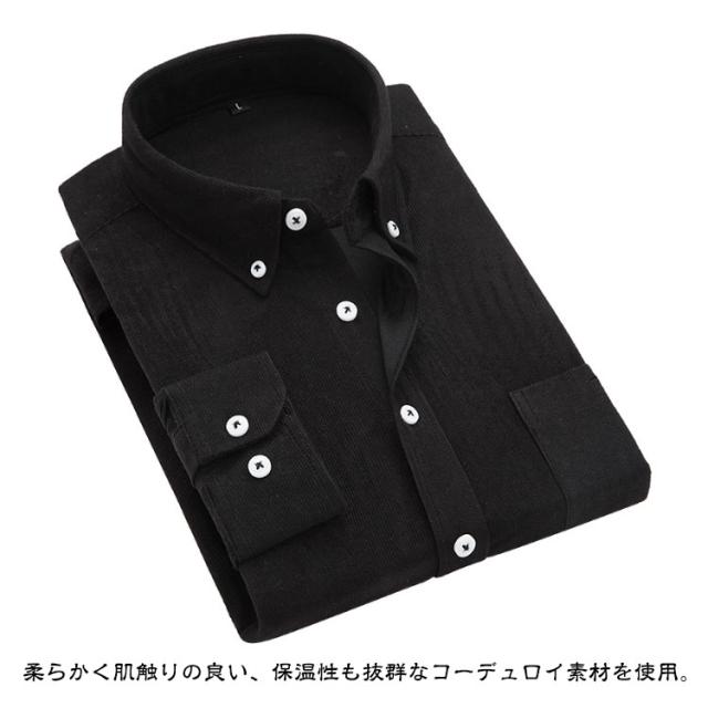 Yシャツ メンズ 長袖 ボタンダウン Yシャツ コーデュロイシャツ シャツジャケット 無地 シンプル シャツ カジュアルシャツ ワイシャツ シャツ 秋冬 ビジネスシャツ 紳士仕事 防寒 コーデュロイ 大きいサイズ 送料無料 暖かい 保温 ビジネス 冠婚葬祭