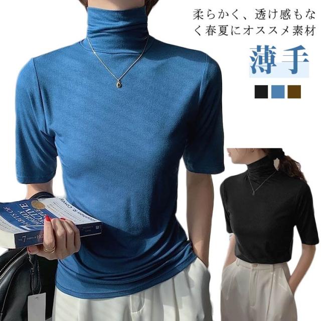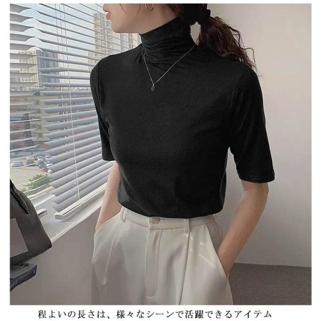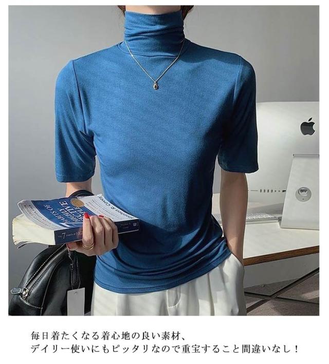 ゴルフ 五分袖 Tシャツ レディース 半袖 半袖 秋 夏 ハイネックtシャツ Tシャツ トップス 春 日焼け対策 無地 カットソー スリム 半袖tシャツ タートルネック 薄手 フィット トレーナー ハイネック 20代 30代 40代 OL