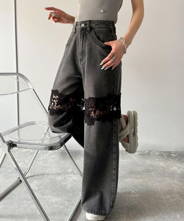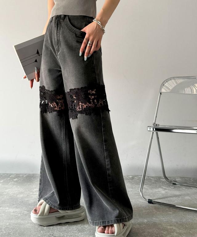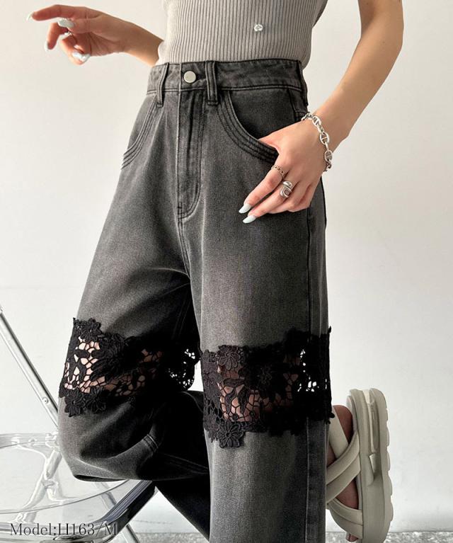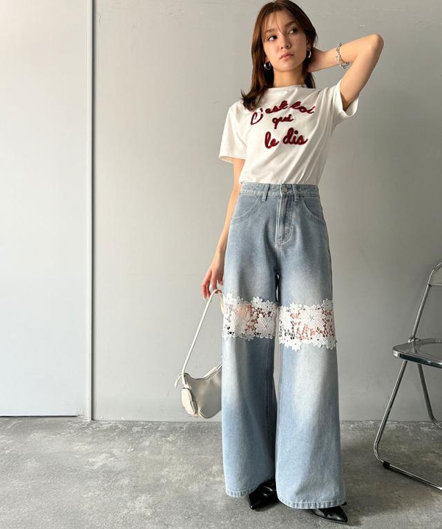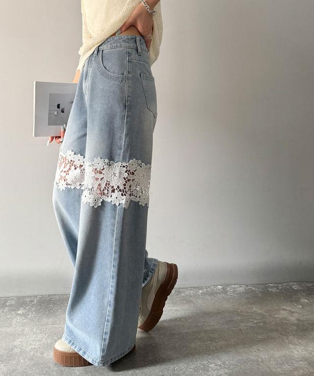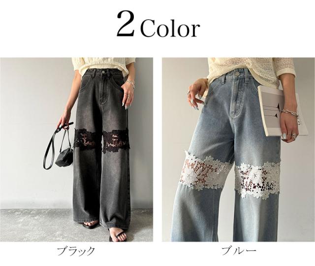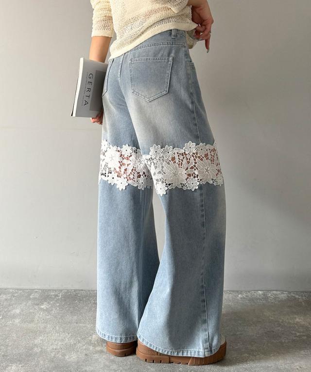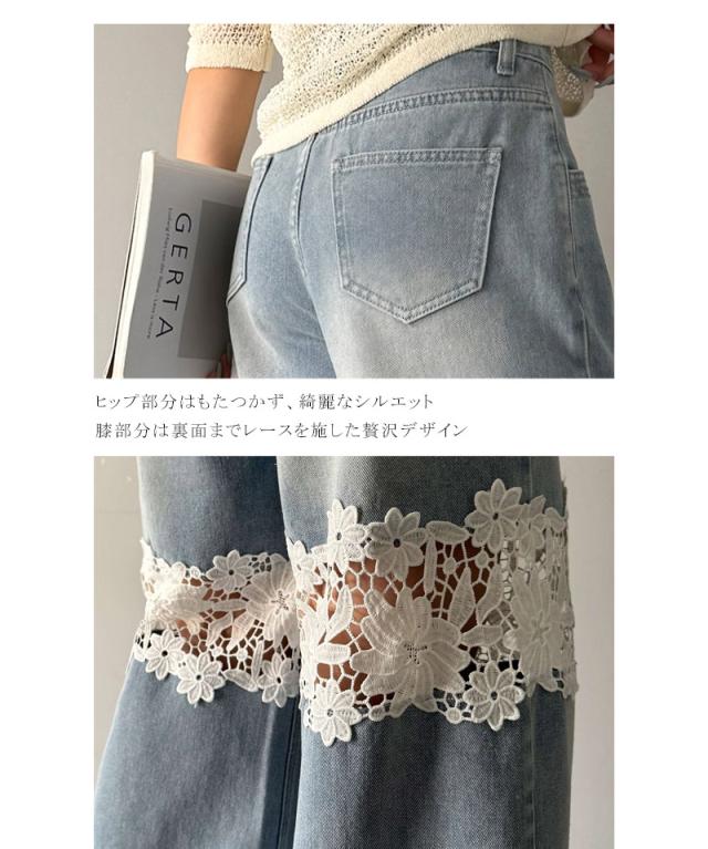 クラシカルエルフ秋新作 mily bilet ボトムス パンツ レディース デニムパンツ 花柄レース ワイドパンツ ストレート ワイドデニムパンツ リラックス感 カジュアル 大きいサイズ 2025ss mi1139076