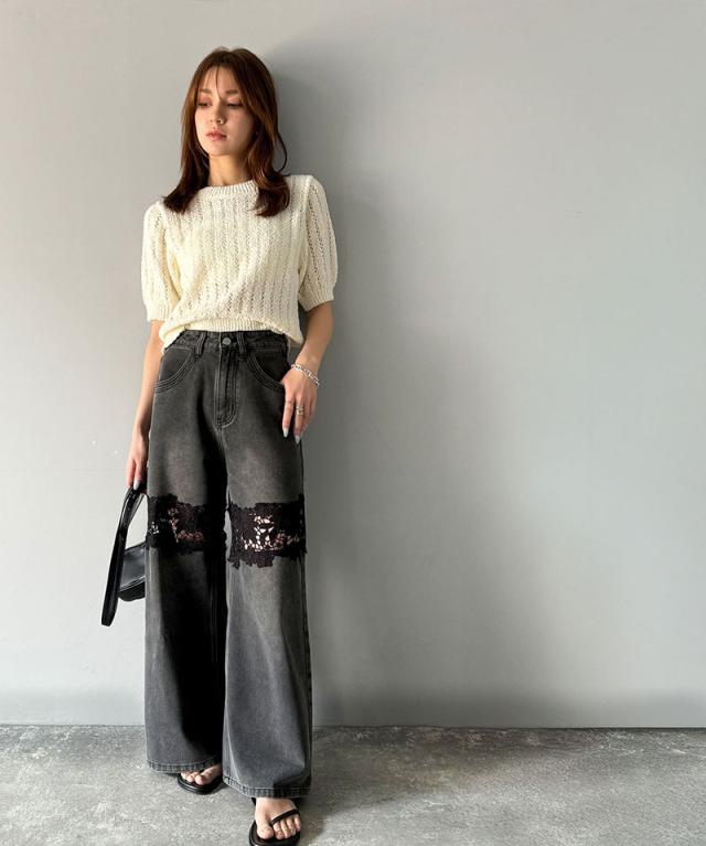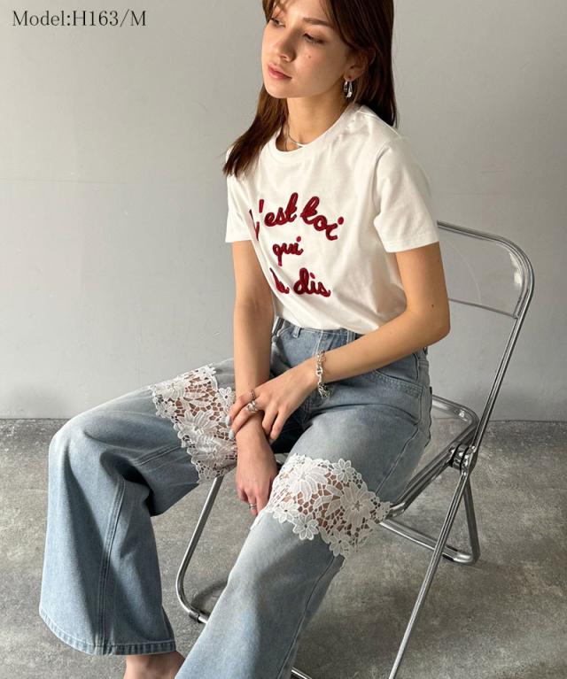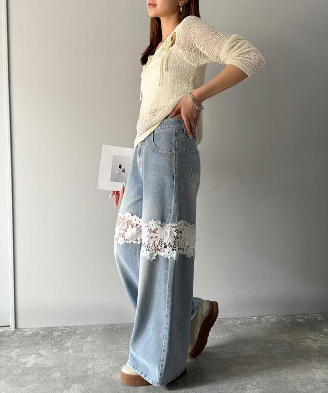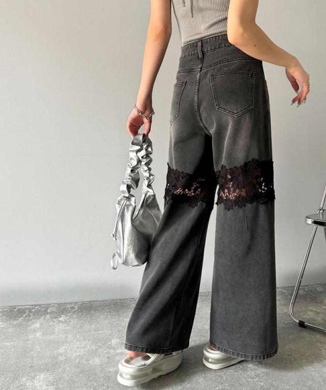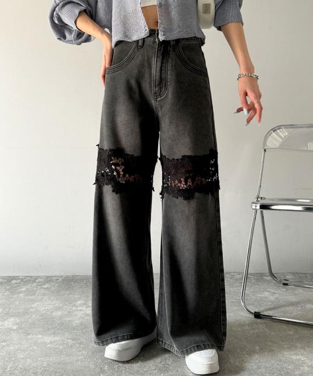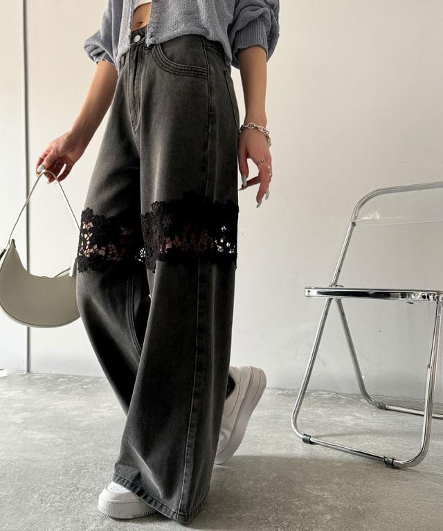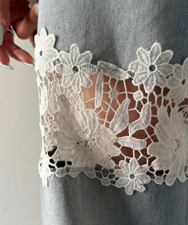 クラシカルエルフ秋新作 mily bilet ボトムス パンツ レディース デニムパンツ 花柄レース ワイドパンツ ストレート ワイドデニムパンツ リラックス感 カジュアル 大きいサイズ 2025ss mi1139076