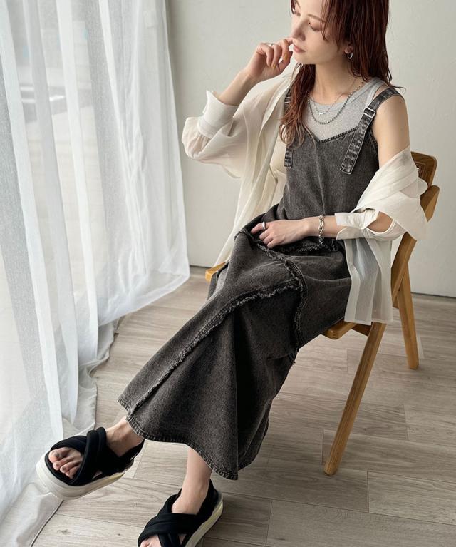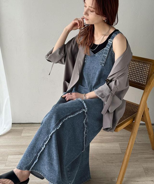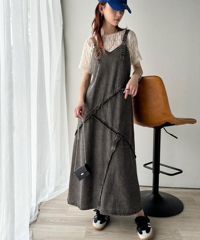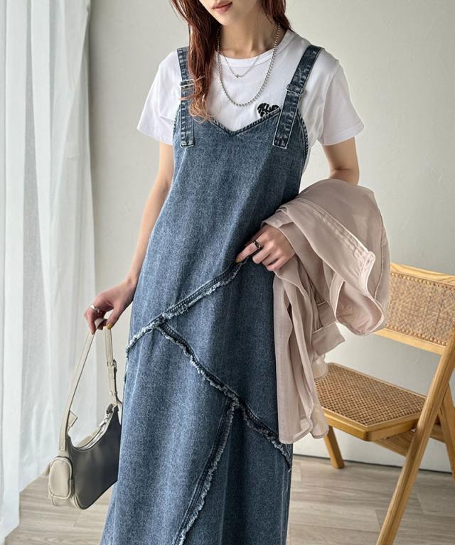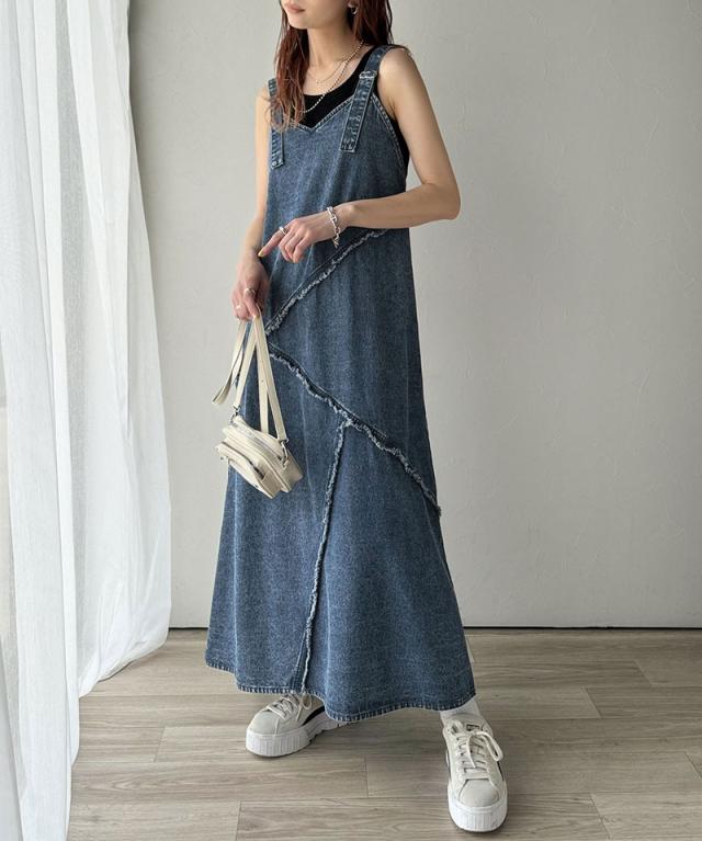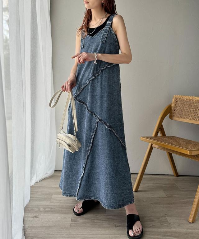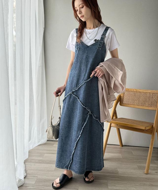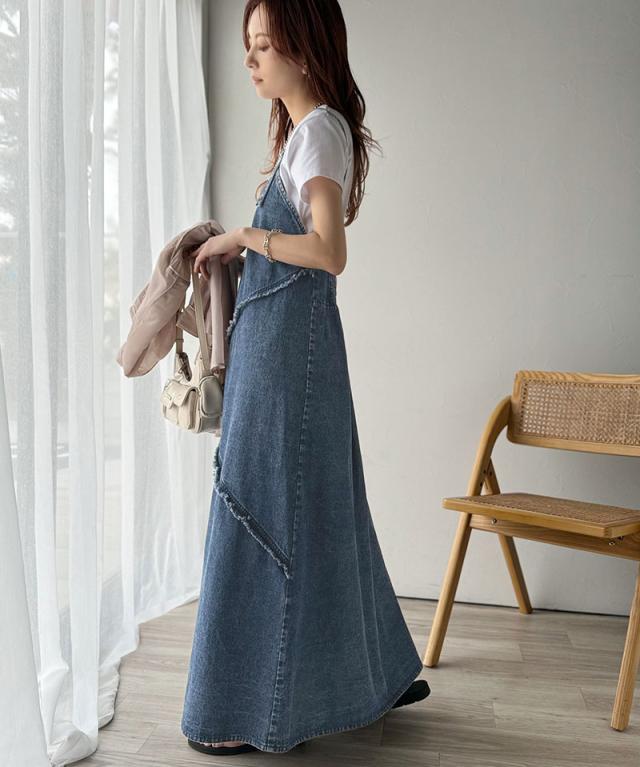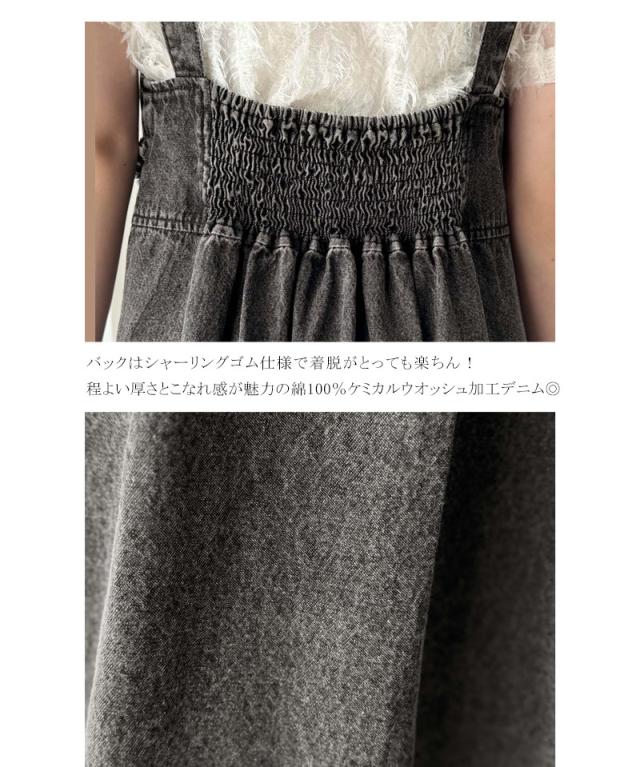 クラシカルエルフ秋新作 ジャンパースカート レディース ジャンスカ デニム ロング フレアスカート 大人 カジュアル ケミカルウオッシュ デニム生地 綿100% 大きいサイズ 2025ss ce1010441