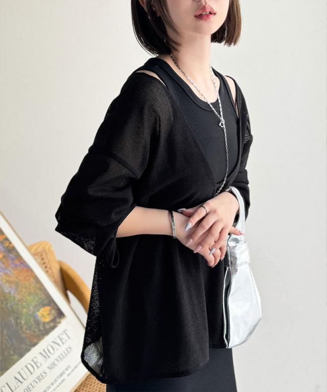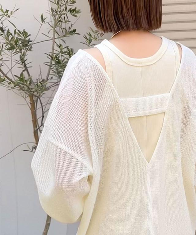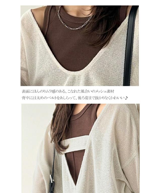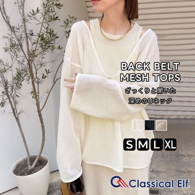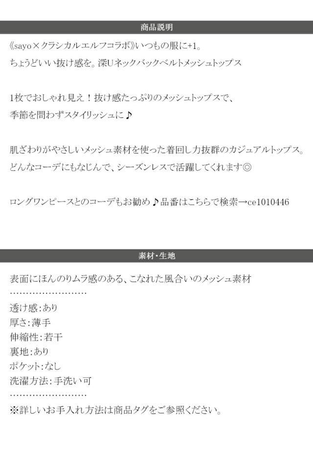 クラシカルエルフ秋新作 sayo×クラシカルエルフコラボ トップス Tシャツ レディース 深 U ネック バック 太ベルト メッシュ T ゆるっと オーバーサイズ 大きいサイズ 2025ss ce1010445