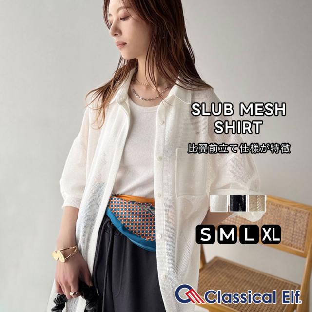 クラシカルエルフ秋新作 トップス ブラウス レディース 比翼デザイン 胸ポケット スラブ メッシュ シャツ 長袖 羽織り ロングシーズン レイヤードコーデ 大きいサイズ 2025ss ce1010462