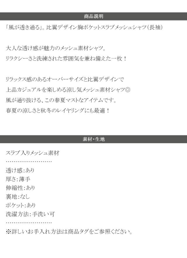★「風が透き通る」。比翼デザイン胸ポケットスラブメッシュシャツ(長袖)★
