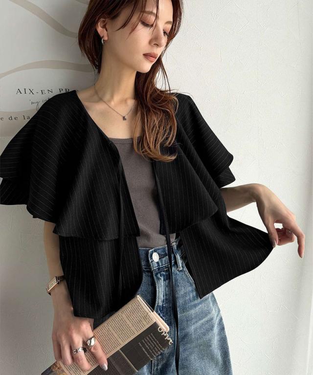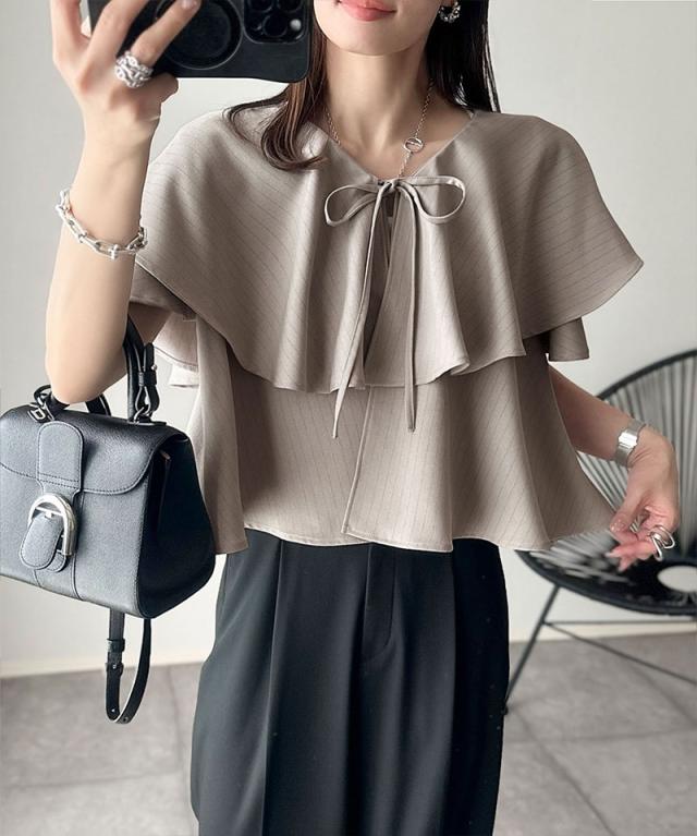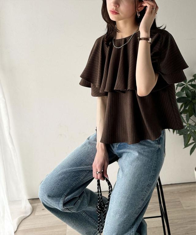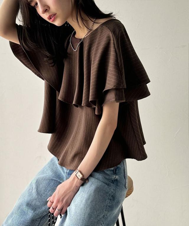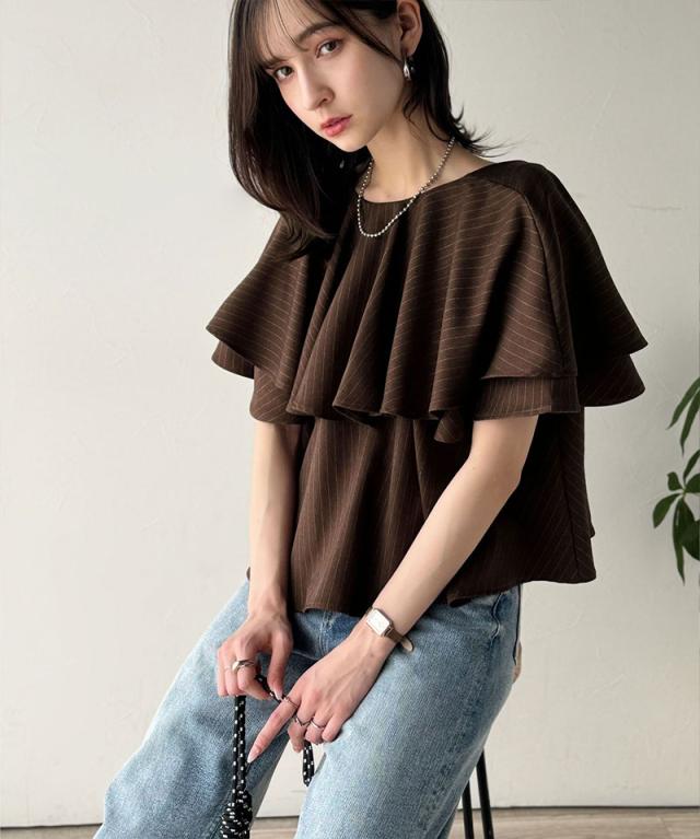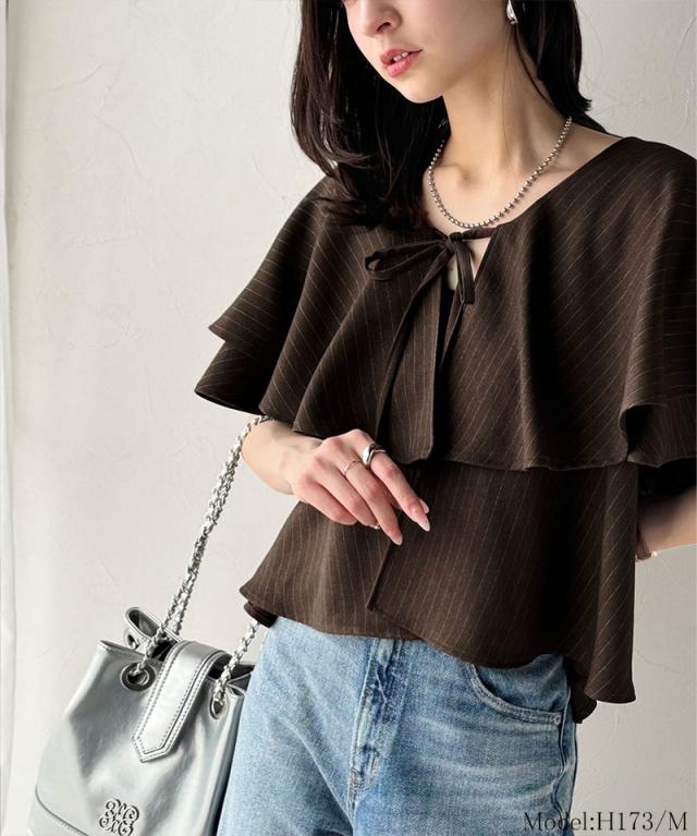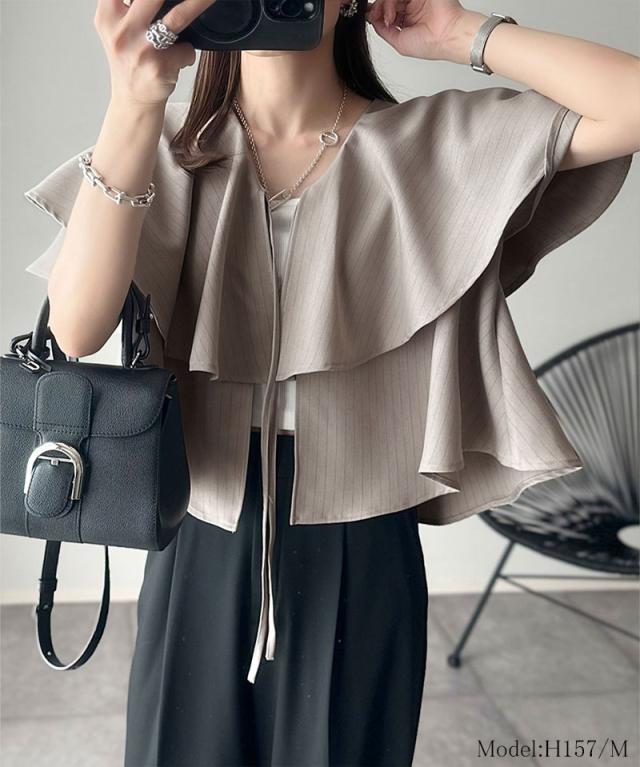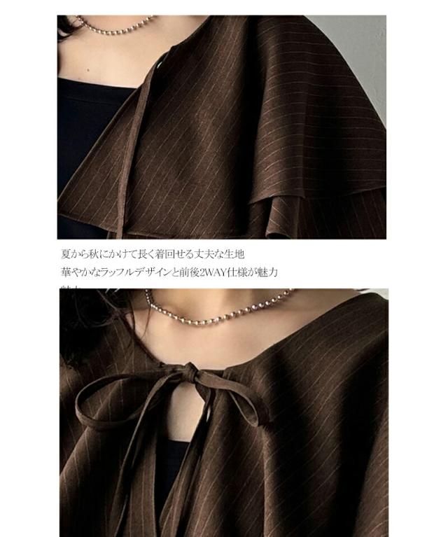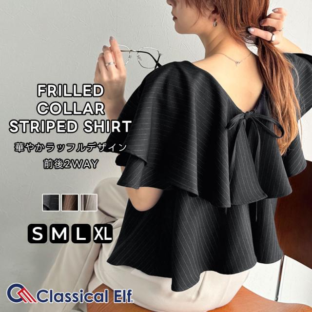 クラシカルエルフ秋新作 トップス シャツ レディース 前後 2way 華やか たっぷり ラッフルフリル 襟 ストライプ ブラウス 半袖 羽織り レイヤードコーデ ロングシーズン 大きいサイズ 2025ss ce1110118