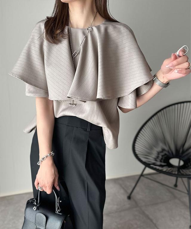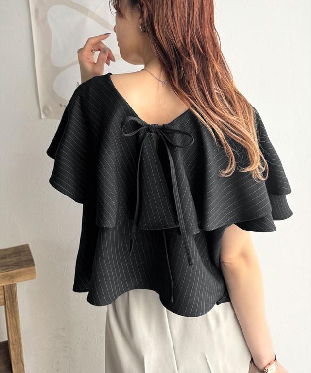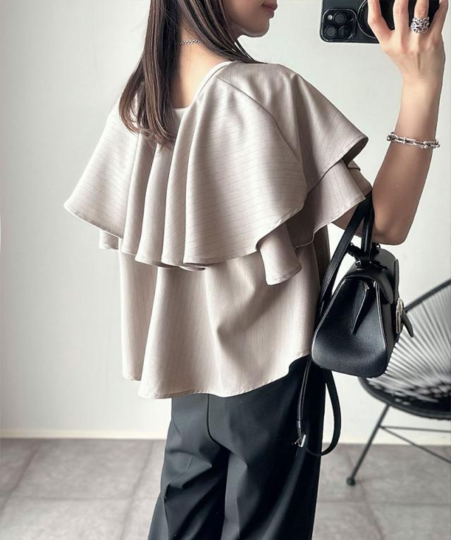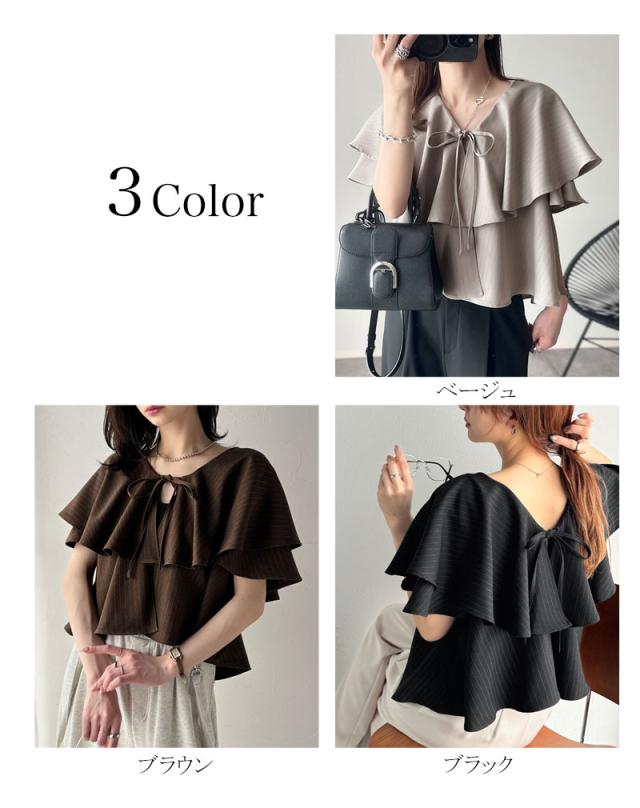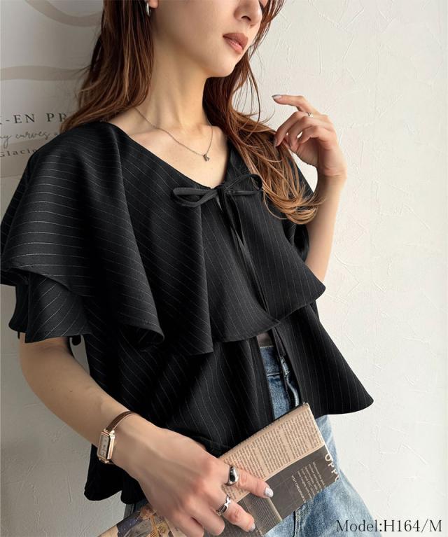 ★動くたび華やかに揺れる。前後2wayフリル襟ストライプシャツ(半袖)★