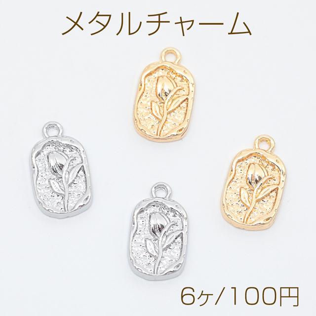 メタルチャーム 合金製 不規則長方形 チューリップ フラワー メタルパーツ 1カン付き 約8×15mm(6ヶ)