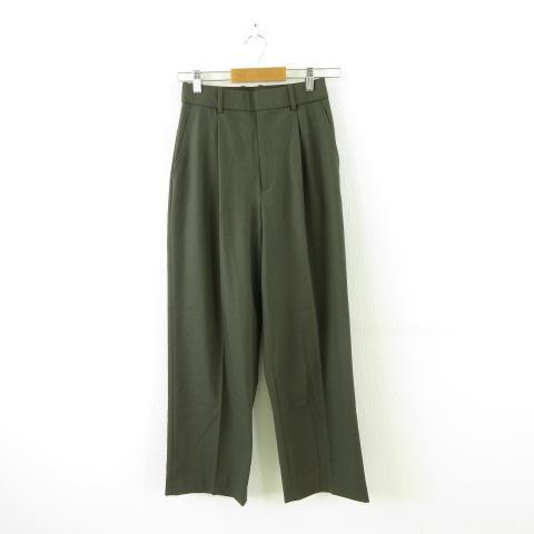 【中古】ユニクロ UNIQLO タックワイドパンツ ロング ストレッチ 緑 S *A718 レディース