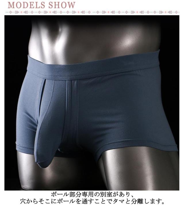 | 2枚セット!通気性抜群!小さなショーツ、大きな幸せ新感覚の陰嚢分離型ボクサーパンツです。 ポール部分専用の別室があり、穴からそこにポールを通すことでタマと分離します。 ポール部分とタマの接触がないので、1日はいた後もべたつかず爽快! 上品な素材で、肌に優しく履き心地快適! 通気性にすぐれ、吸湿性も高いので蒸れる心配はありません。 | |