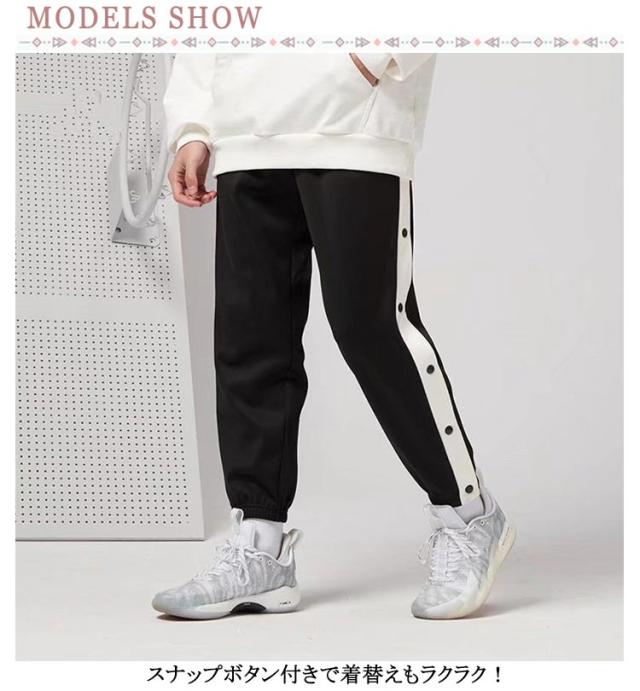 バスケットボールパンツ キッズ ジャージ スナップボタン 裾ボタン バスケットボールパンツ サイドライン 練習用パンツ バスケパンツ ジャージパンツ 長ズボン バスケットボールパンツ バスケットボール 下