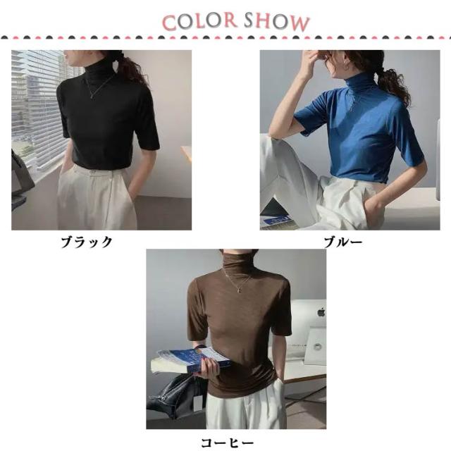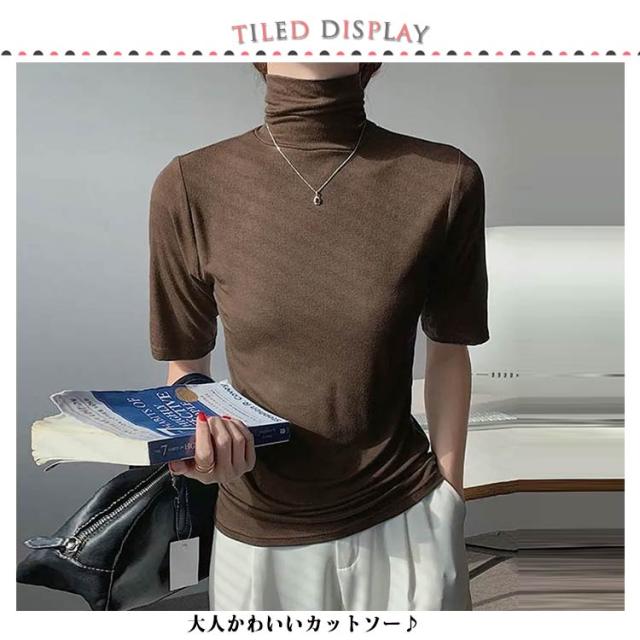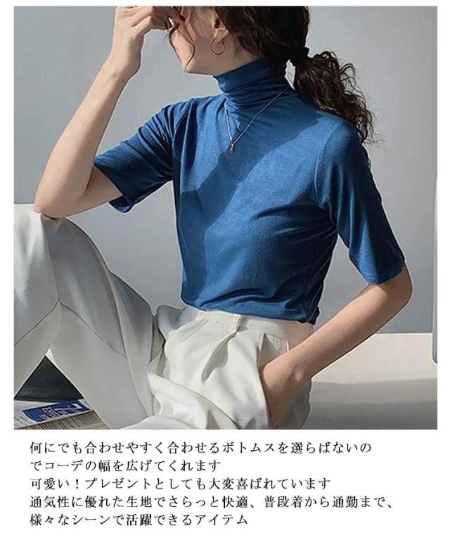 ハイネック トップス トレーナー レディース 半袖 Tシャツ 春 夏 Tシャツ 30代 ゴルフ 秋 タートルネック 無地 カットソー 半袖tシャツ 五分袖 半袖 ハイネックtシャツ フィット スリム 薄手 20代 ハイネック 40代 OL