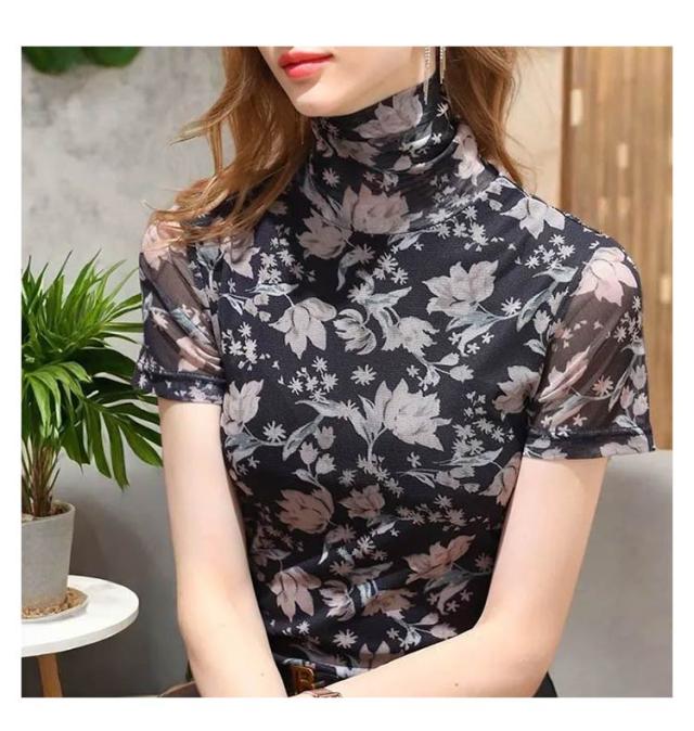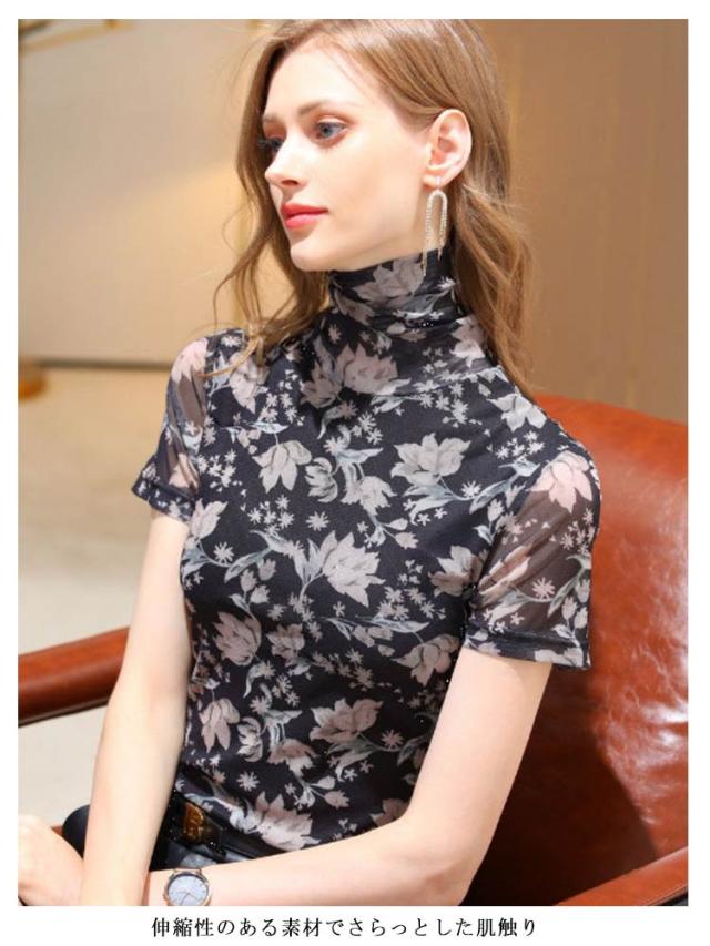 メッシュ素材 Tシャツ タートルネック ハイネック 半袖トップス レディース 半袖 トップス タートルネック 花柄 半袖シャツ 大きいサイズ tシャツ ゆったり インナー 無地 おしゃれ 春夏 春 夏 ハイネック