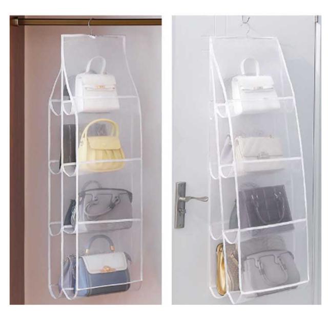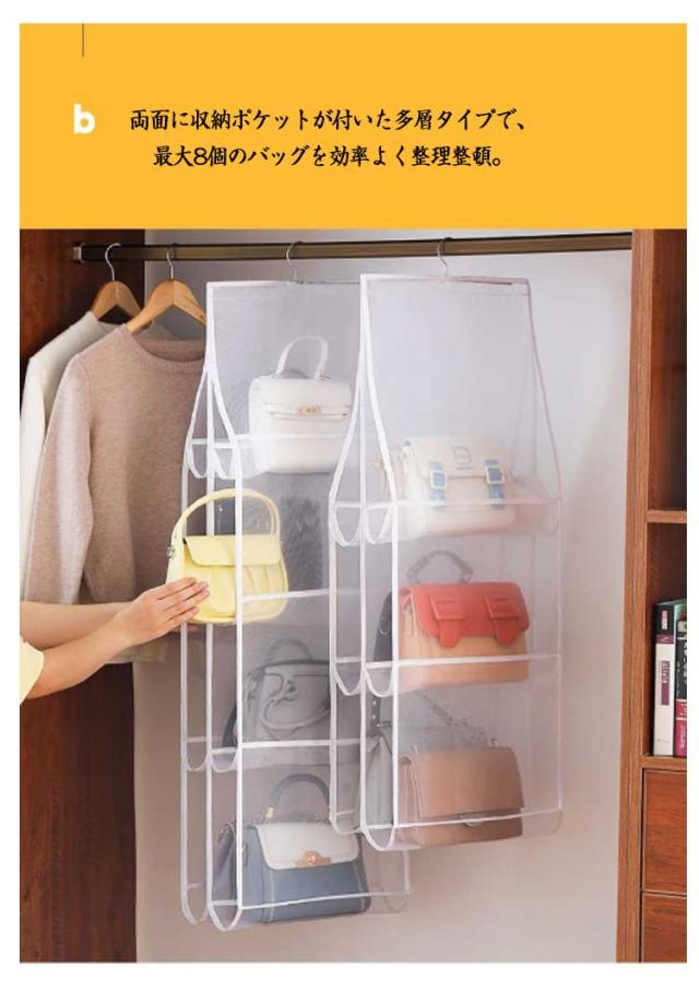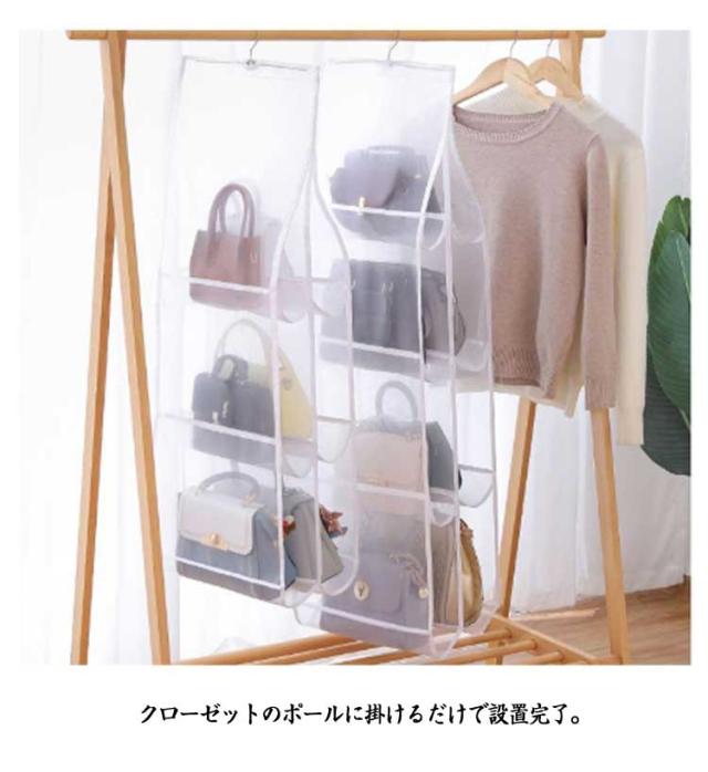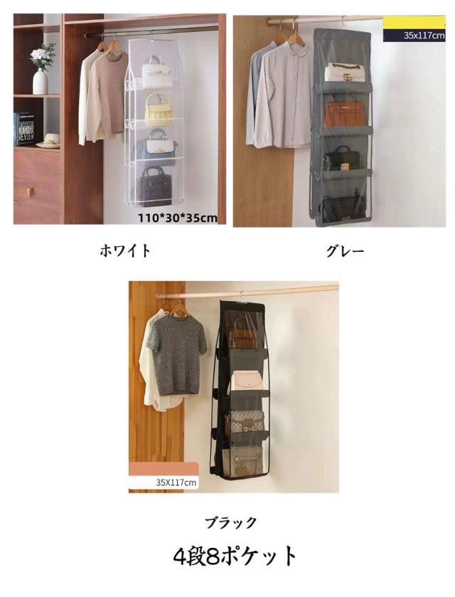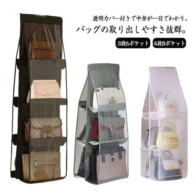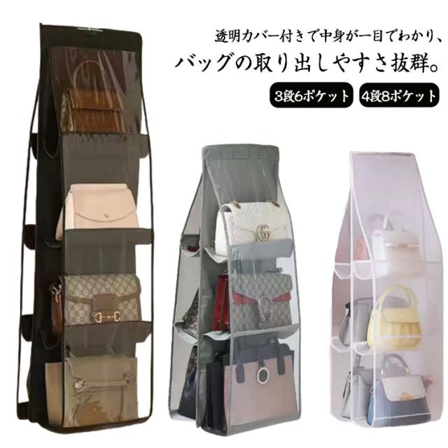 防塵カバー バッグ収納 ハンガー収納 バッグ収納 透明カバー付き 吊り下げ式 多層収納 壁掛け 折りたたみ式 防カビ 通気性 無地 両面収納 バッグ整理 フック付き 省スペース収納 軽量 おしゃれ 押し入れ 三段 四段