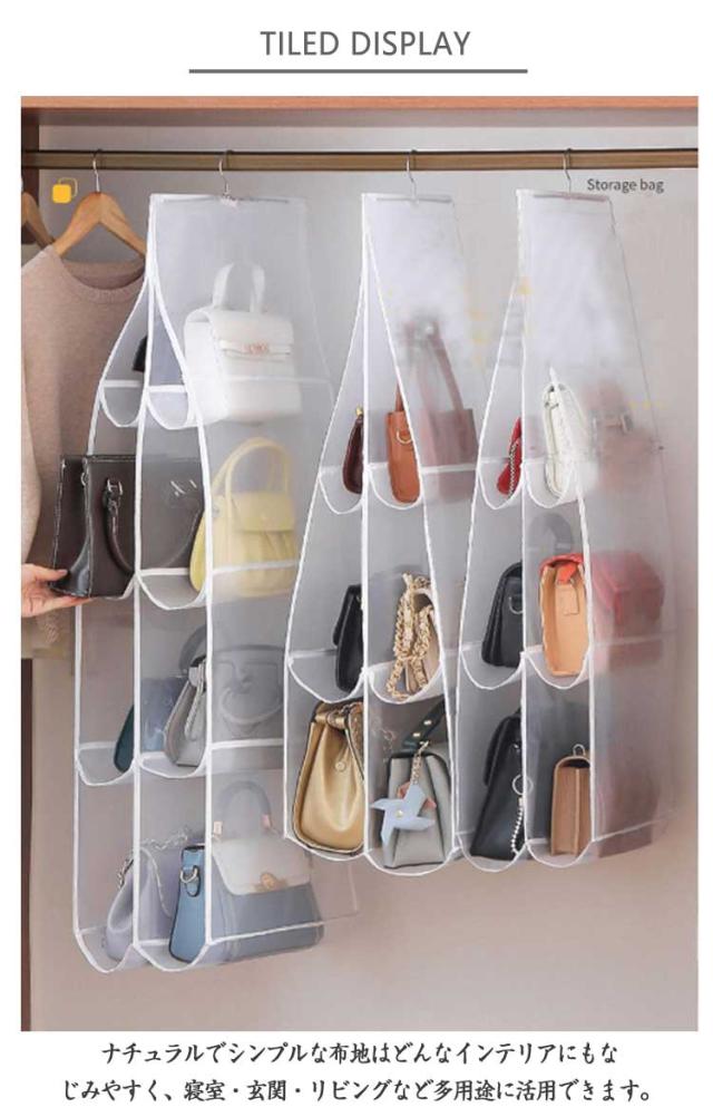 | 透明カバー付きで中身が一目でわかり、バッグの取り出しやすさ抜群。 不織布素材で軽量&通気性がよく、バッグをホコリやカビから守ります。防塵・防湿・防カビ機能付きで長く清潔に使えます。 折りたたみ可能で、使わないときはコンパクトに収納可能。引越しや季節の衣替えにも大活躍。 両面に収納ポケットが付いた多層タイプで、最大8個のバッグを効率よく整理整頓。 クローゼットのポールに掛けるだけで設置完了。 ナチュラルでシンプルな布地はどんなインテリアにもなじみやすく、寝室・玄関・リビングなど多用途に活用できます。 | |
