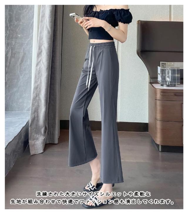 ストレッチ 冷感パンツ 接触冷感 接触冷感 フレアパンツ パンツ ひんやり レディース スウェットパンツ アイスシルクパンツ 通気性 涼しい 薄手 夏 イージーパンツ ルームウェア 部屋着 スポーツ ウエストゴム 速乾 サラサラ 窮屈感ゼロ