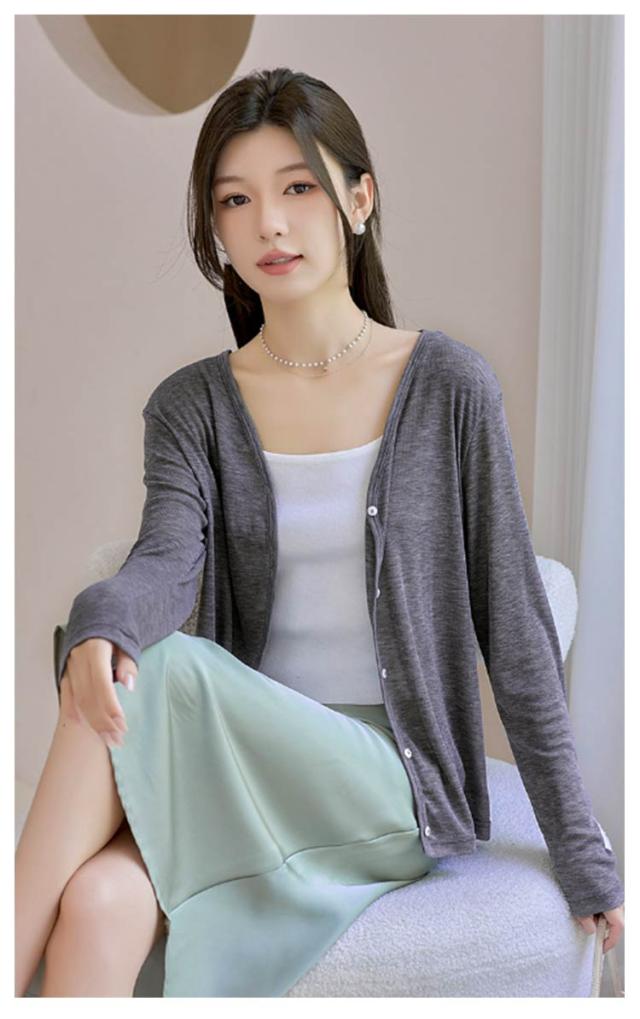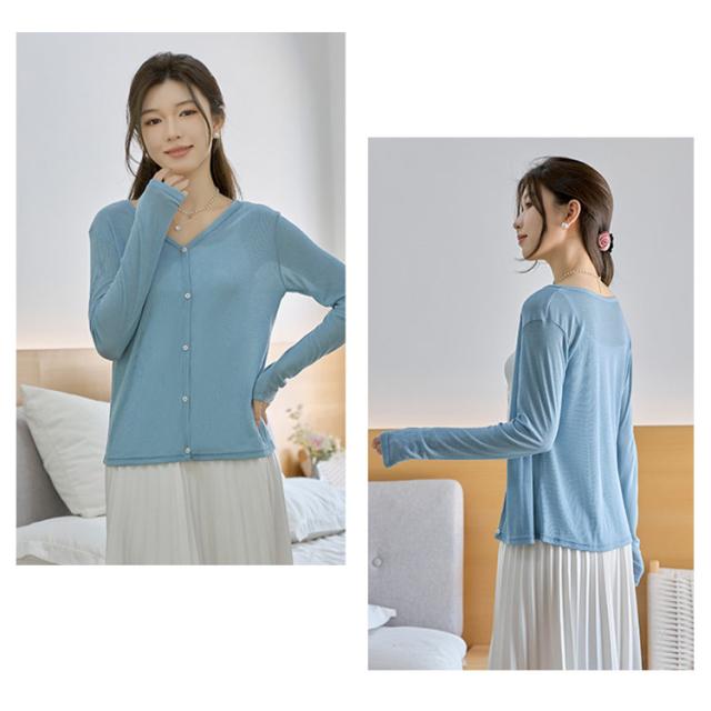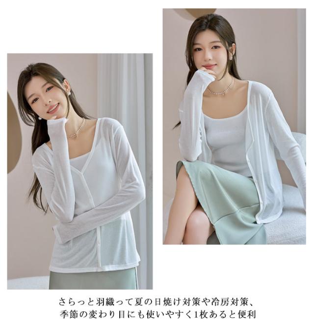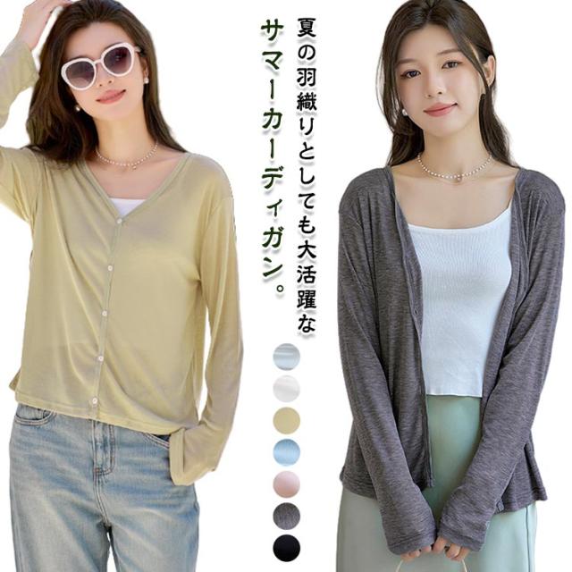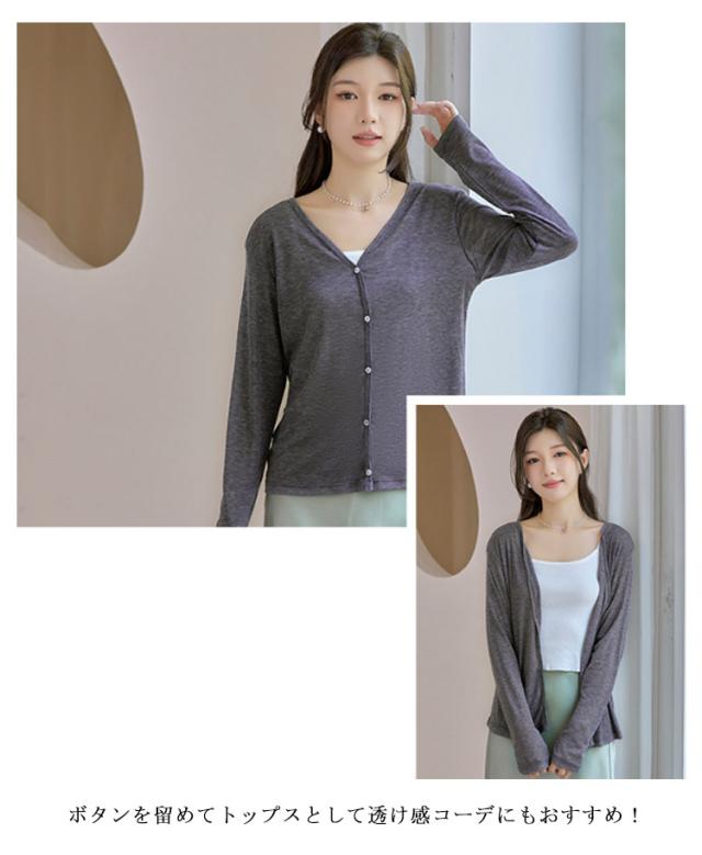 シアーニットカーディガン Vネック シアーカーディガン 長袖 無地 サマーニット トップス カーディガン 薄手 ボタン シアーニット シアートップス シアーニットカーディガン オフィスカジュアル
