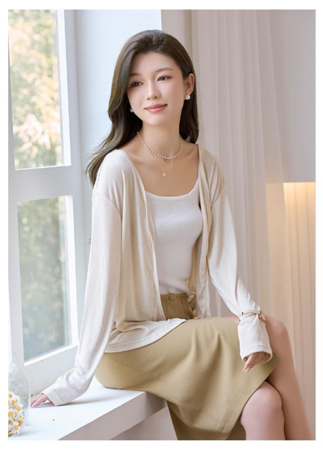| 夏の羽織りとしても大活躍なサマーカーディガン。 キャミソールやショートトップスでレイヤードコーデも楽しめる。 さらっと羽織って夏の日焼け対策や冷房対策、季節の変わり目にも使いやすく1枚あると便利 ボタンを留めてトップスとして透け感コーデにもおすすめ! | |