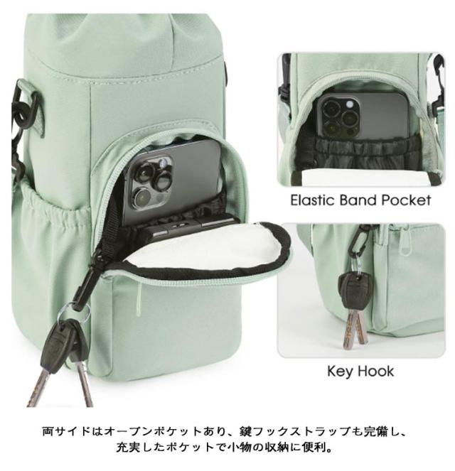| 【大容量対応】【保冷・保温】 【ショルダー水筒ケース】 ハンドストラップとショルダーストラップ付きの2WAY仕様 内側にはアルミ加工を施し保冷・保温効果も◎ スマートフォン、カードやワイヤレスイヤホンなど小物を入れるのに安心のファスナーポケット付き。 両サイドはオープンポケットあり、鍵フックストラップも完備し、充実したポケットで小物の収納に便利。 デイリー使いはもちろん、スポーツ・アウトドアシーンなど幅広く活躍! | |