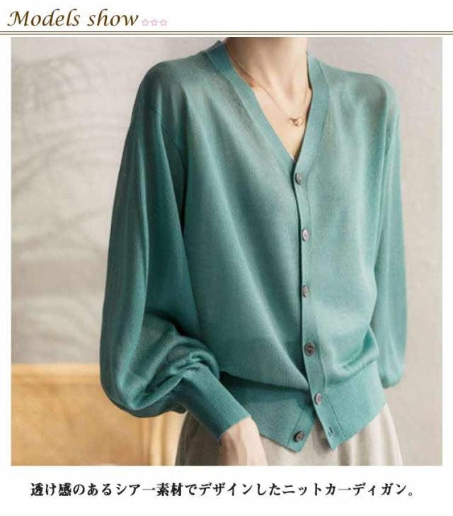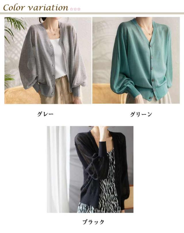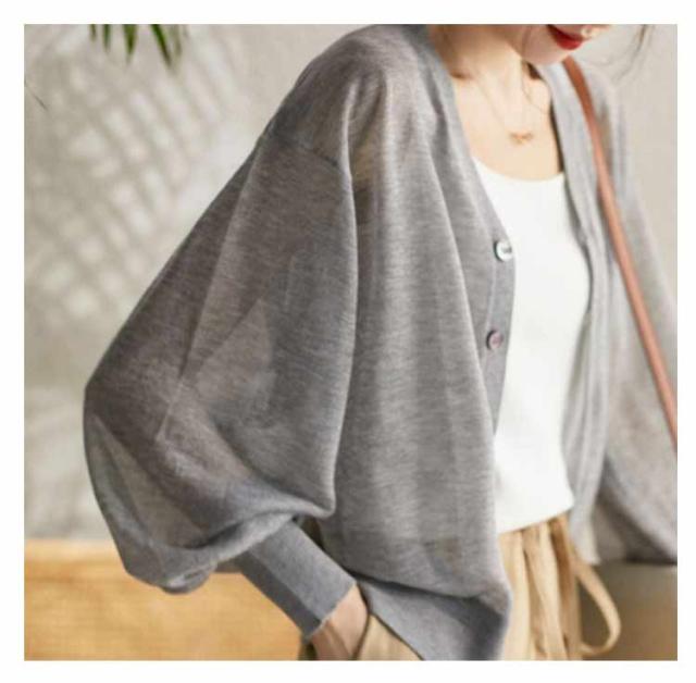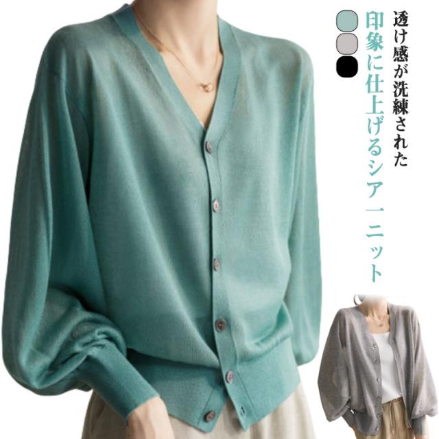 春 トップス 夏 ぽわん袖 シアートップス シアーニットカーディガン カーディガン ニットカーディガン シアー シアーニットカーディガン サマーニット オーバーサイズ 長袖 通勤