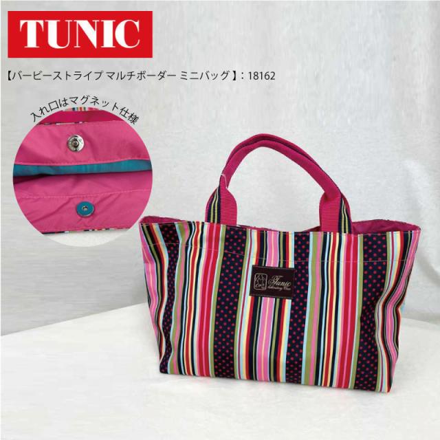 TUNIC チュニック タフタ転写プリントバービーストライプ マルチボーダー ミニバッグ 18162