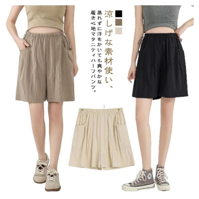 | 涼しげな素材使い、蒸れずに汗をかいても爽やかな履き心地マタニティハーフパンツ。 暑い季節も涼しく快適に、蒸れにくく快適に着用できます。 ウエストにコードストッパー付きで調整可能です。 マタニティ期(産前)〜授乳期(産後)まで、 長くご愛用頂けるパンツです。 | |