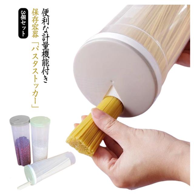 パスタストッカー パスタポット 計量機能付き ケース パスタケース スパゲッティ パスタ 食品保存容器 保管 3個セット 貯蔵 密閉 パスタ容器 収納 保存容器 食品ストッカー プラスチック キャニスター パスタポット パスタはかり うどん箱