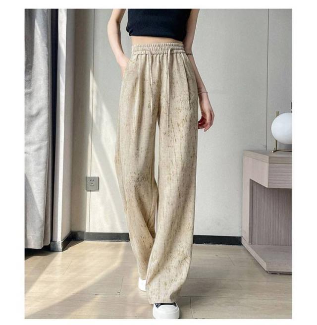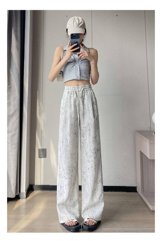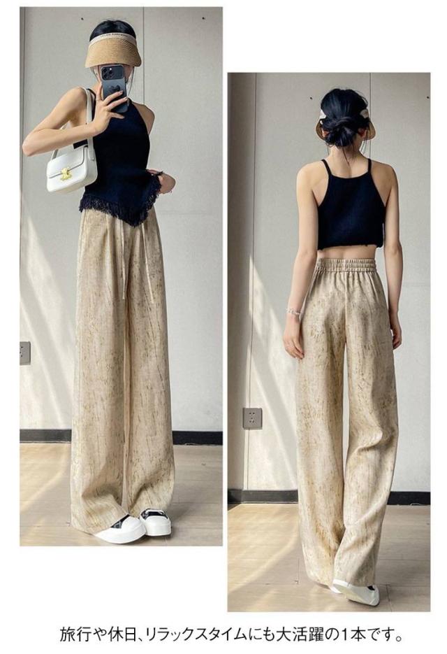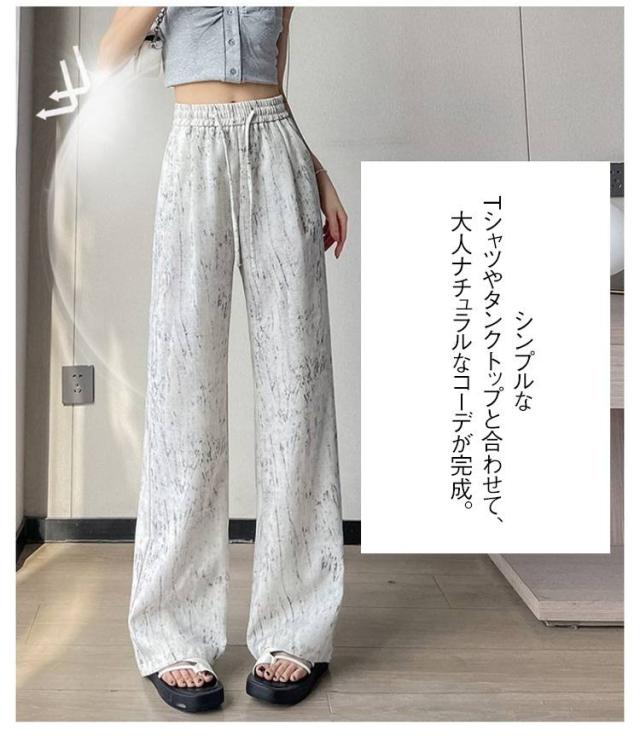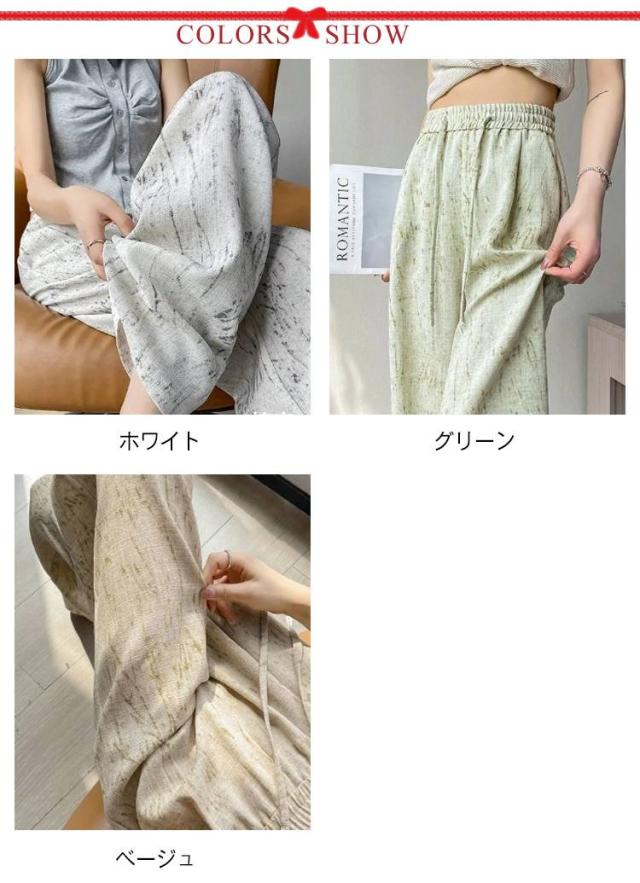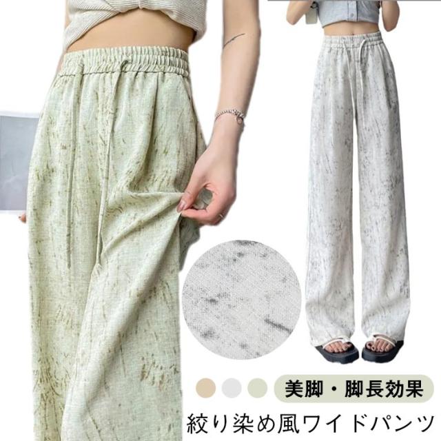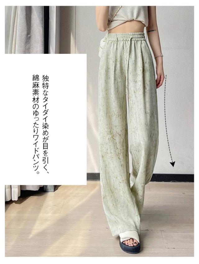 タイダイ柄 ハイウエスト ワイドパンツ レディース 薄手 綿麻 ゆったり 夏用 タイダイ柄 ガウチョパンツ カジュアル 涼感ボトムス 絞り染め ウエストゴム 涼しい